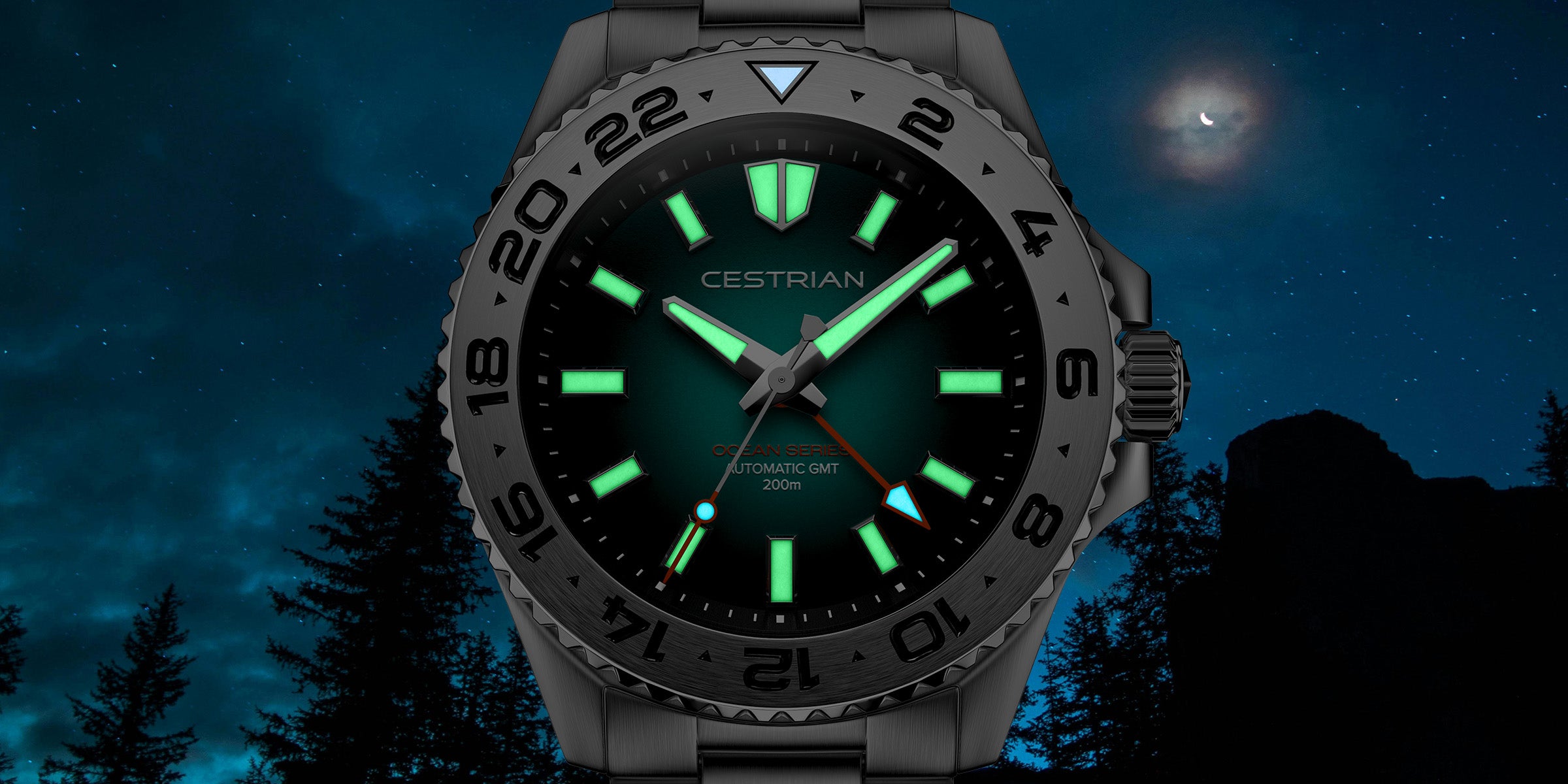 Applied to the hands, indices, and key dial markers, Swiss Super-LumiNova® ensures the Ocean Series remains readable long after daylight fades. The glow is clean, even, and purposefully balanced — bright enough to perform, refined enough not to overwhelm.