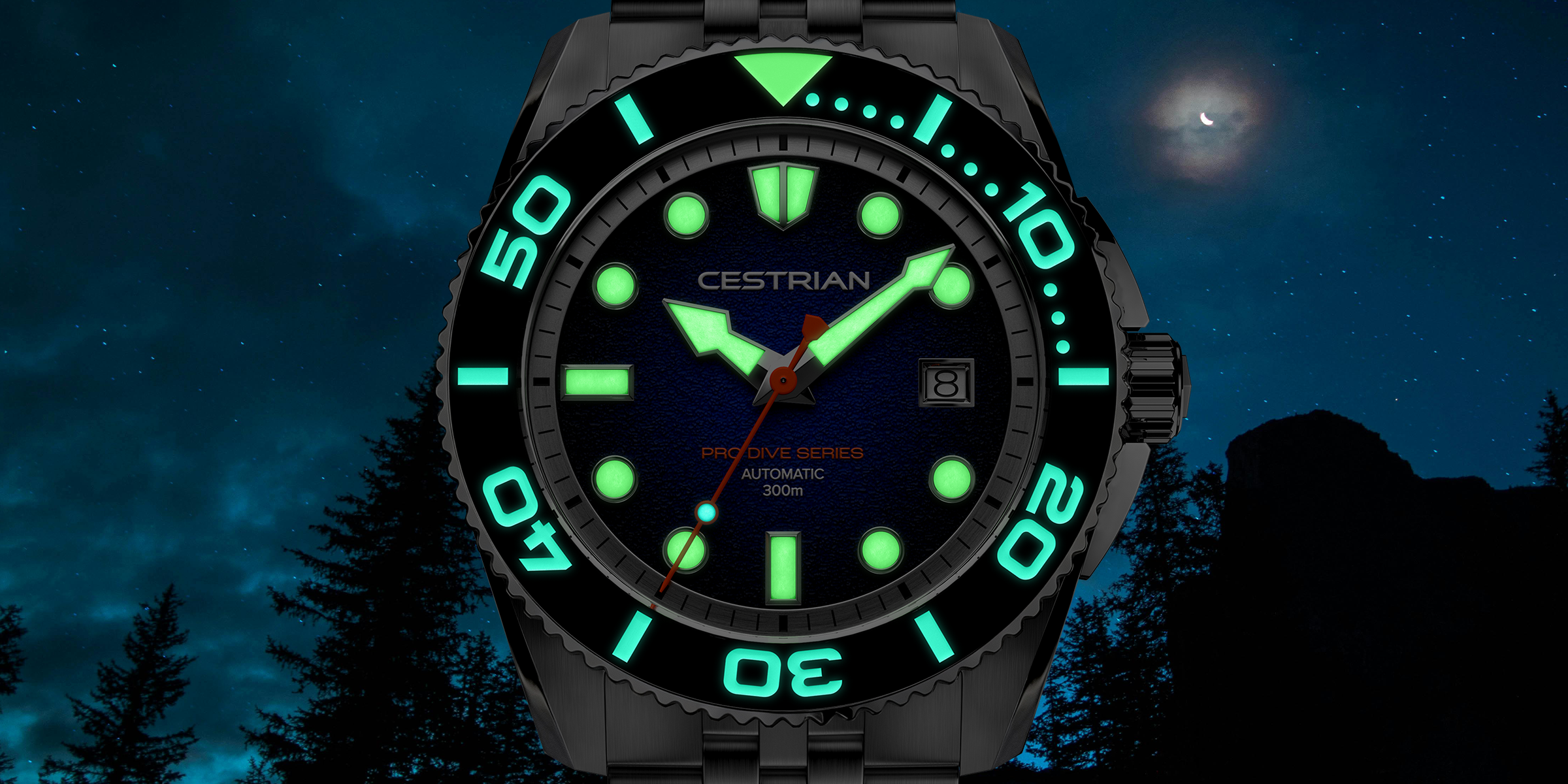 Applied to the hands, indices, and key dial markers, Swiss Super-LumiNova® ensures the Pro Dive Series remains readable long after daylight fades. The glow is clean, even, and purposefully balanced — bright enough to perform, refined enough not to overwhelm.