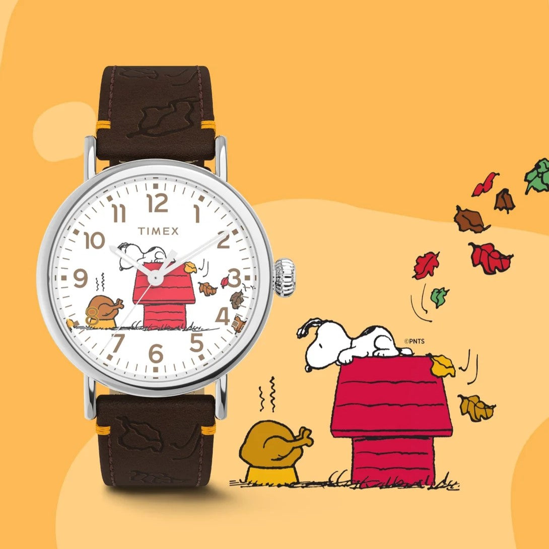 The Timex Peanuts collection brings beloved characters like Snoopy, Charlie Brown, and the whole Peanuts gang to your wrist in a delightful blend of nostalgia and timeless style. Each watch in this playful range combines Timex’s classic craftsmanship with charming Peanuts artwork, creating a whimsical yet sophisticated look for fans of all ages. Featuring reliable quartz movements and the signature Indiglo® night-light, Timex Peanuts watches add a touch of fun to your everyday style, perfect for expressing your love for these iconic characters.