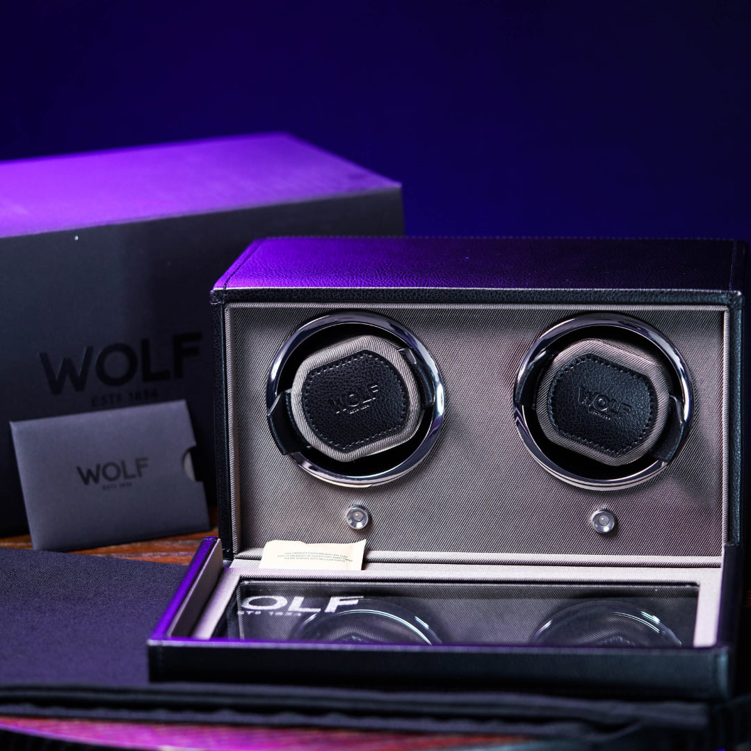 Wolf 1834 is renowned for its luxury watch winders, watch boxes, jewelry cases, and safes. The brand is recognized for its craftsmanship, heritage, and patented winding technology that accurately counts rotations to maintain automatic watches in perfect condition.