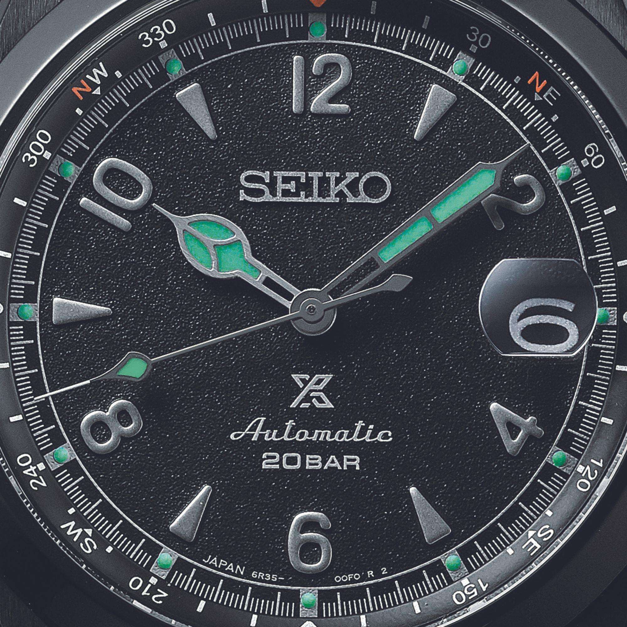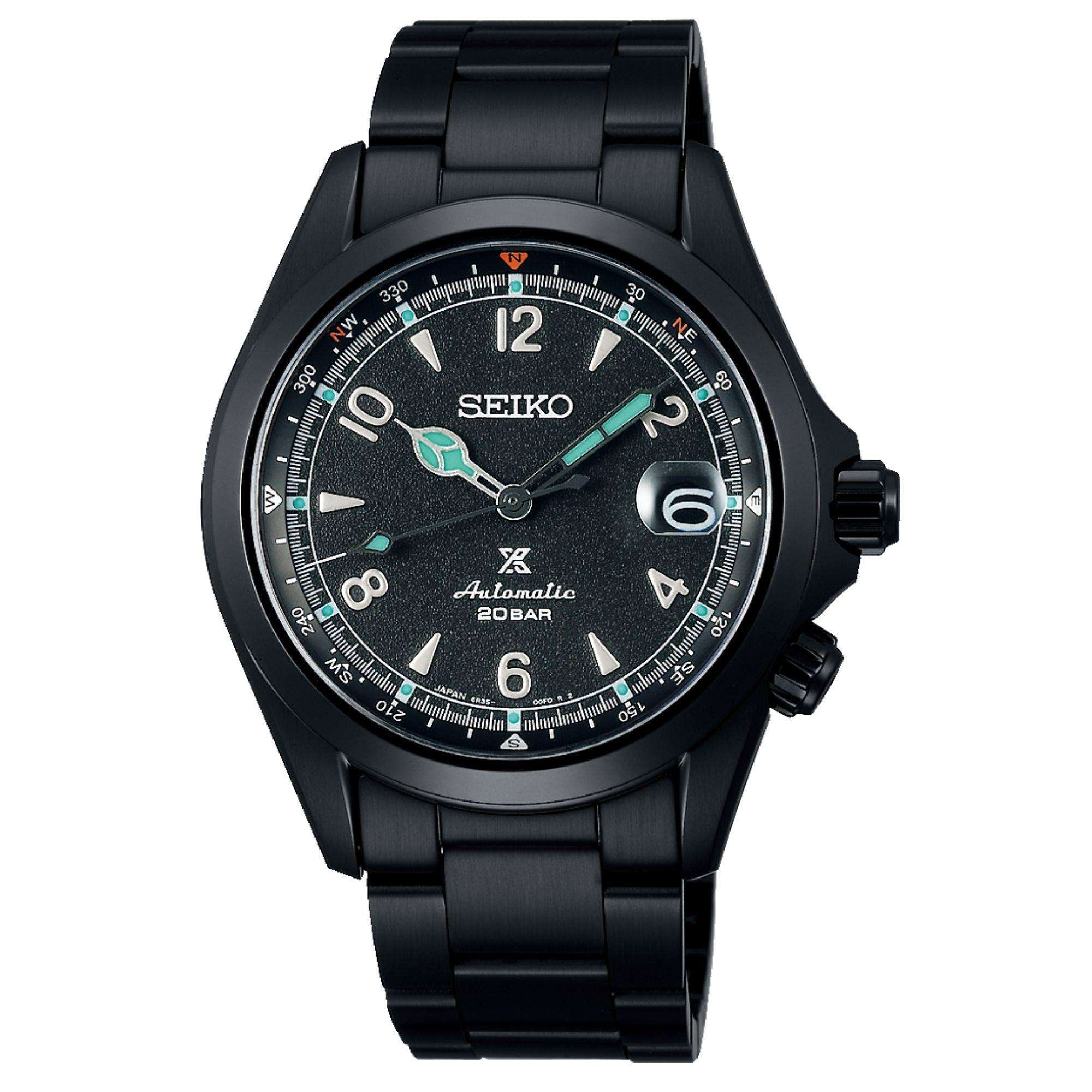 Seiko Prospex ‘Black Series Night’ Alpinist Limited Edition Black PVD Mens Watch SPB337J1 Introducing the latest iteration of the Prospex Black Series ‘Night’ designs: inspired by night diving missions and the intrepid diver’s view through a night scope.This watch is the first timepiece in the Black Series to be a land-based concept, but with diving watch influences – it is an ‘Alpinist’ design – first launched in 1959 for Japanese ‘Yama-otoko’ mountain men, to be reliable in treacherous terrain.The newly developed green ‘Lumibrite Pro’ colouring on the markers and hands is designed for increased visibility during night dives, allowing time to be read clearly in dark conditions. It displays the same colour in light and dark, for consistency and quick recognition, regardless of the light.Powered by in-house built Calibre 6R35, this watch is suitable for diver’s depths of 200m and is accompanied by a stainless steel bracelet with three fold clasp and push button release.Prospex is a combination of the words ‘Professional’ and ‘Specifications’. These timepieces are designed to be practical, reliable and durable within extreme or everyday environments, for experts, sports lovers and adventure seekers alike. Since launching Japan’s first diver’s watch in 1965, Seiko’s innovative watchmaking has changed global dive watch standards.