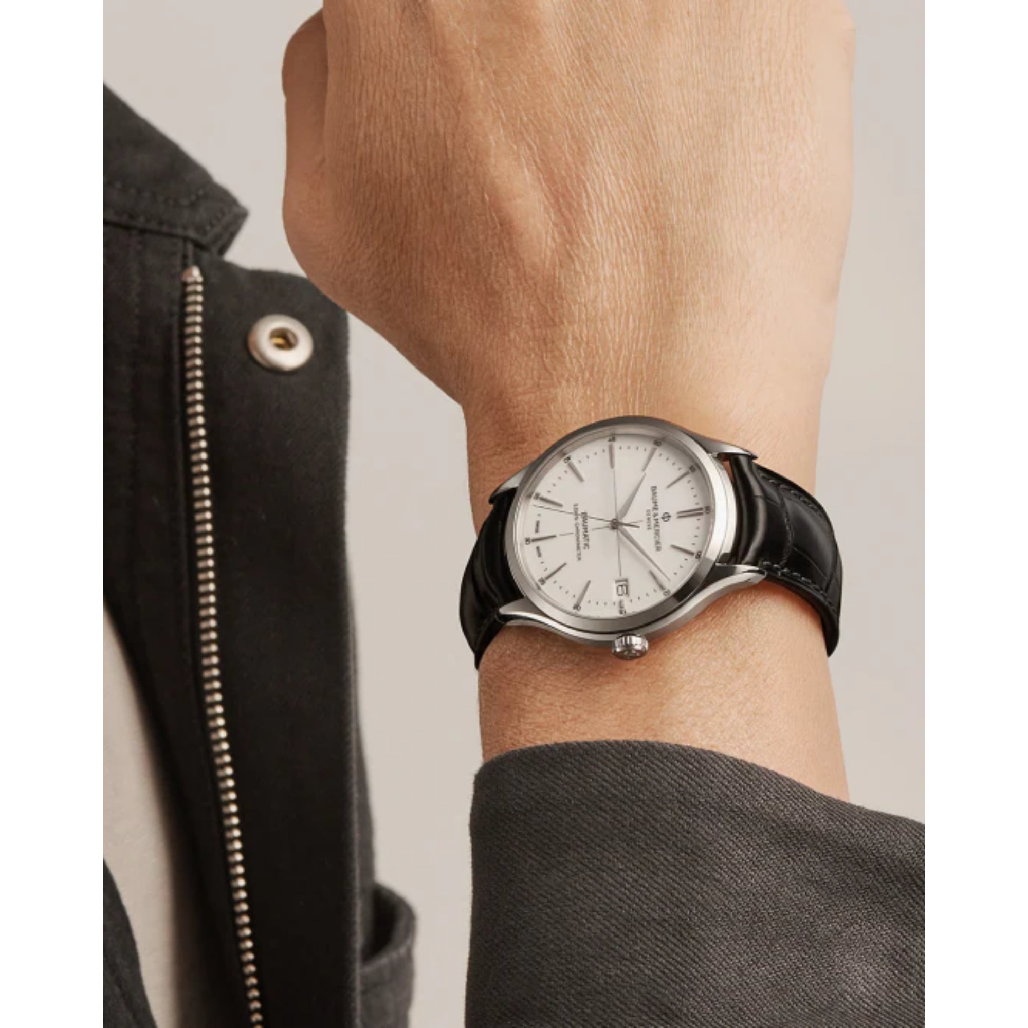 Baume & Mercier Clifton Baumatic 40mm Automatic White Dial Black Leather Strap Men’s Watch BM0A10518