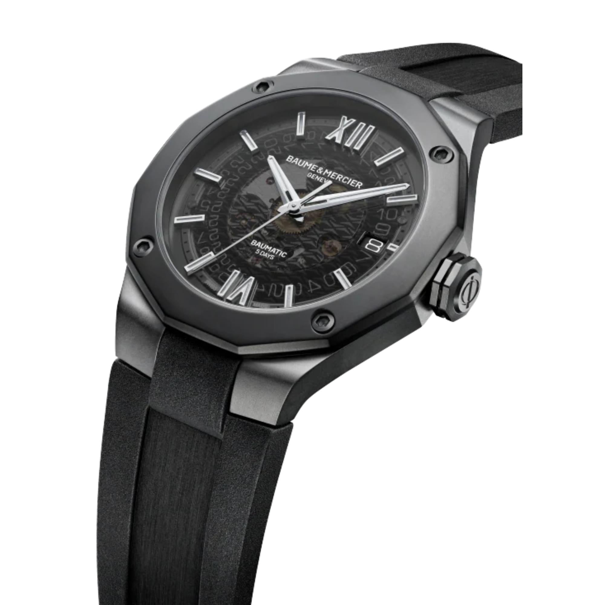 Baume & Mercier Riviera Baumatic 42mm Automatic Grey Dial Black Rubber Strap Men’s Watch BM0A10617