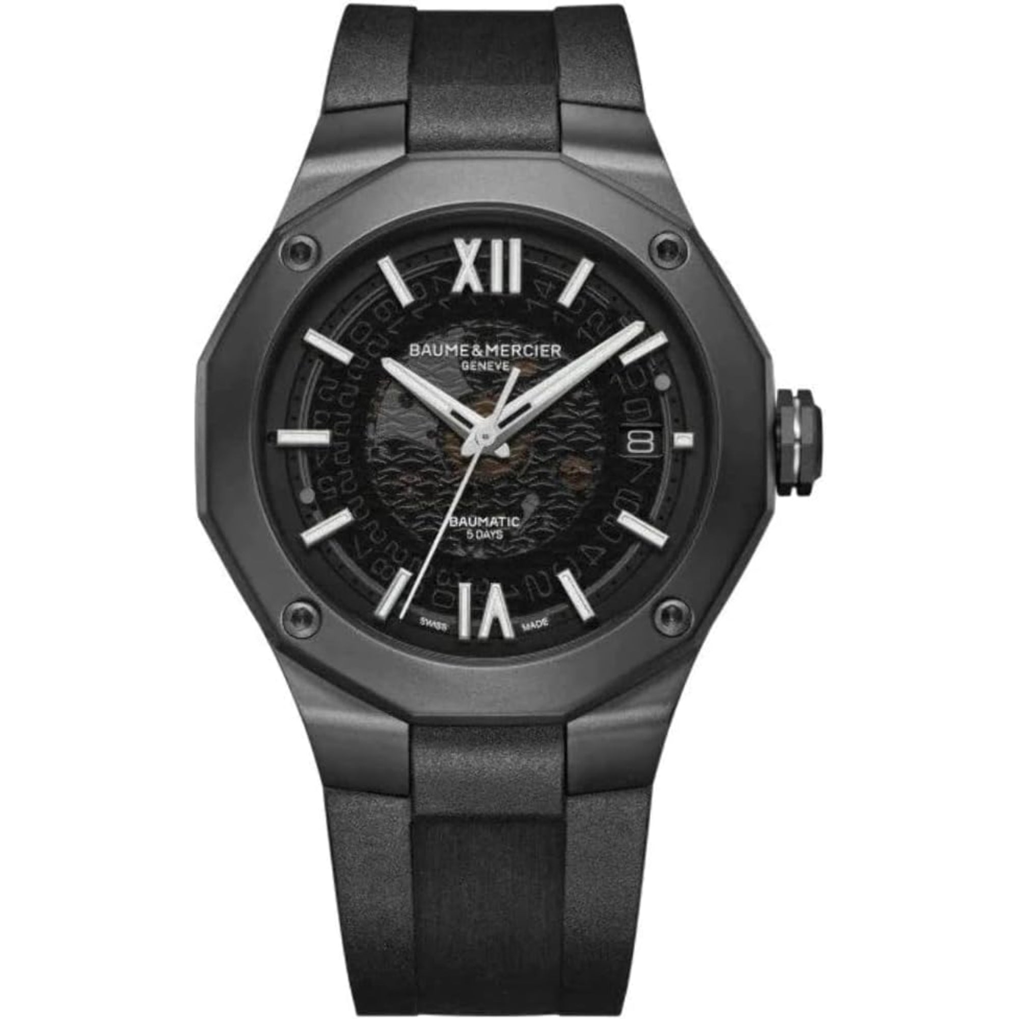 Baume & Mercier Riviera Baumatic Automatic Grey Dial Black Rubber Strap Men's Watch BM0A10617