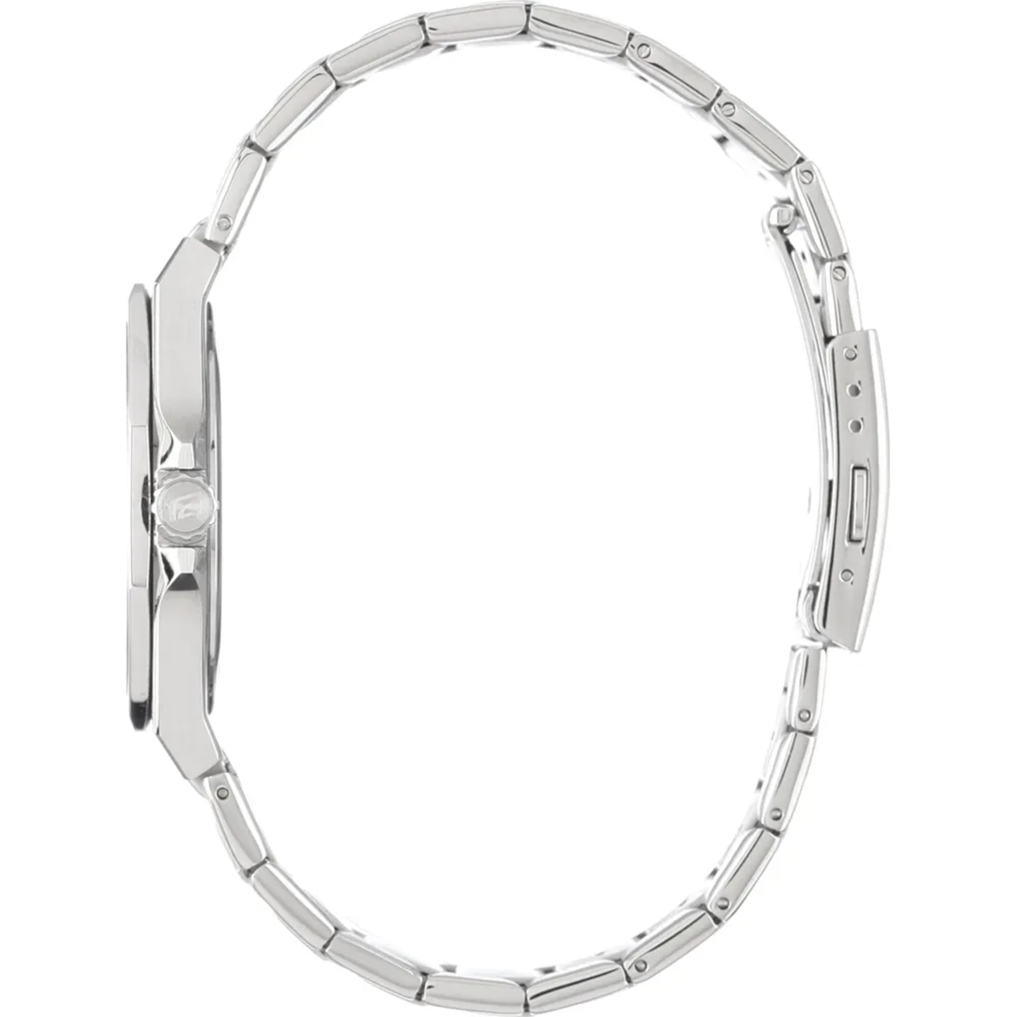- Stainless Steel Bracelet: The durable stainless steel bracelet is polished to perfection, offering a high-quality finish and a comfortable fit, secured with a fold-over clasp for added convenience.