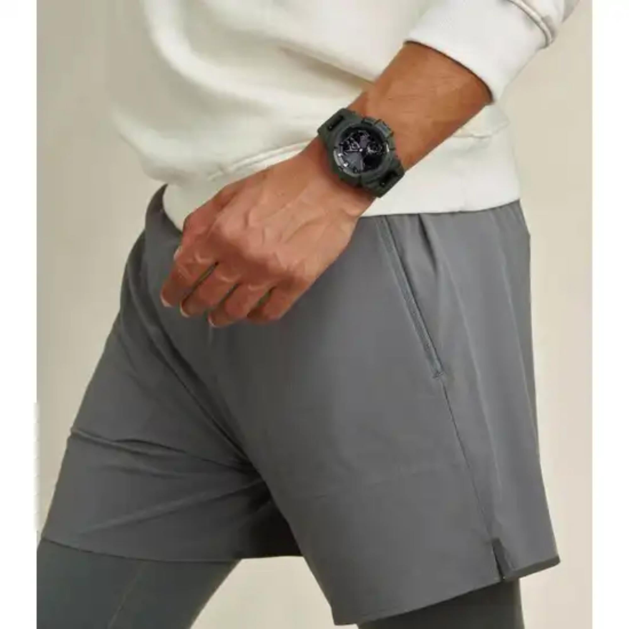 The GBA-900UU-3AER stands out with its bold black digital dial and green resin strap, offering a unique and modern aesthetic. The large digital display ensures easy readability, even during intense physical activities. The watch’s tough resin case adds durability and resistance to impact, while the shock-resistant construction allows it to withstand the rigors of sports and outdoor adventures. Its backlight makes checking the time easy even in low-light conditions, while the analog-digital hybrid display provides versatile timekeeping options, allowing you to view both analog and digital time simultaneously.