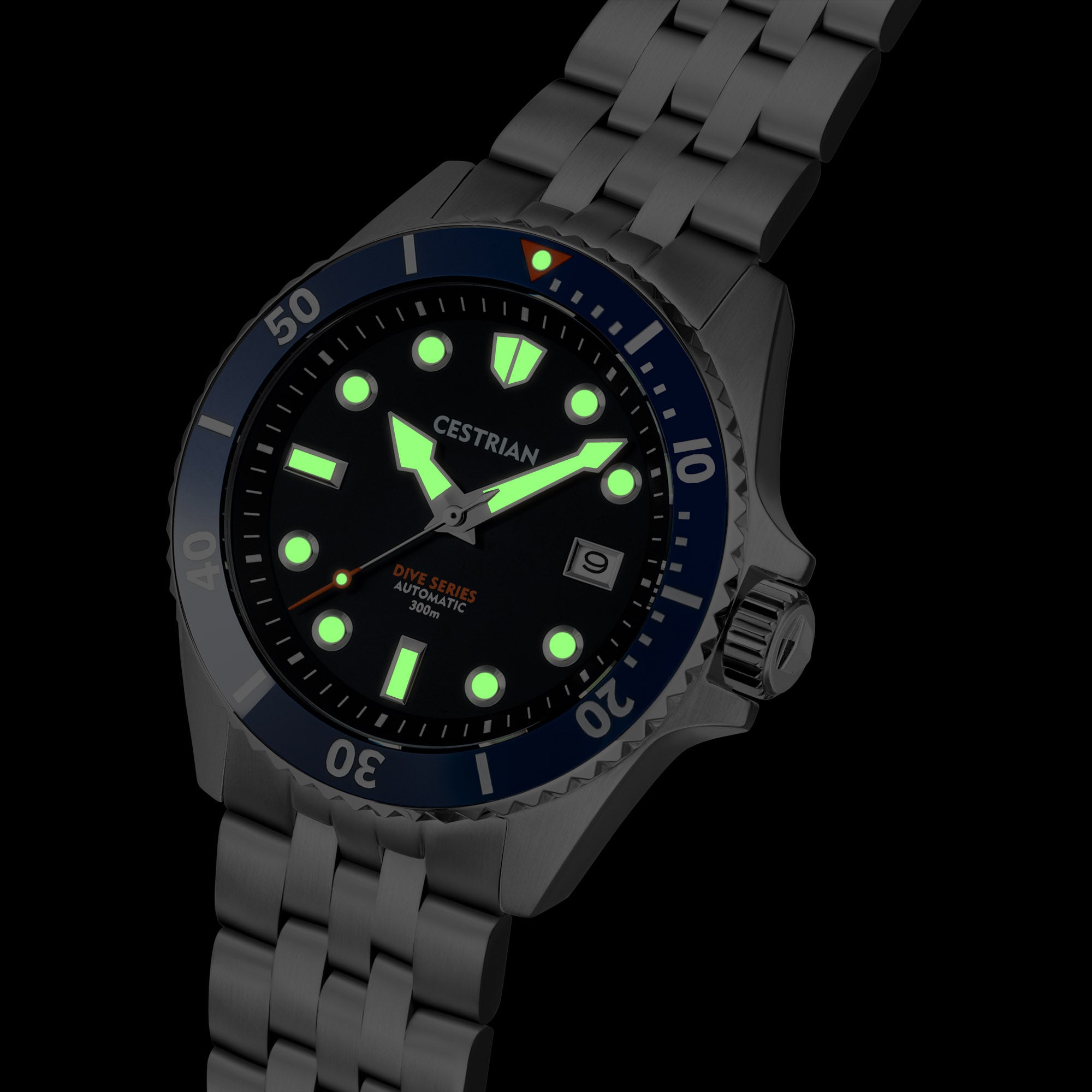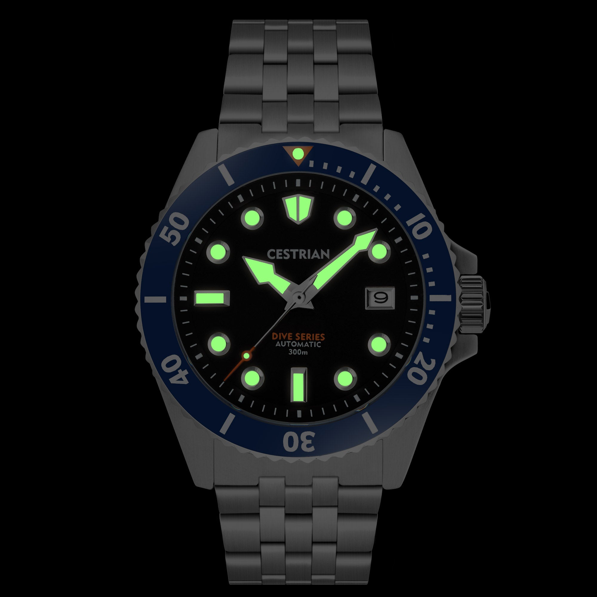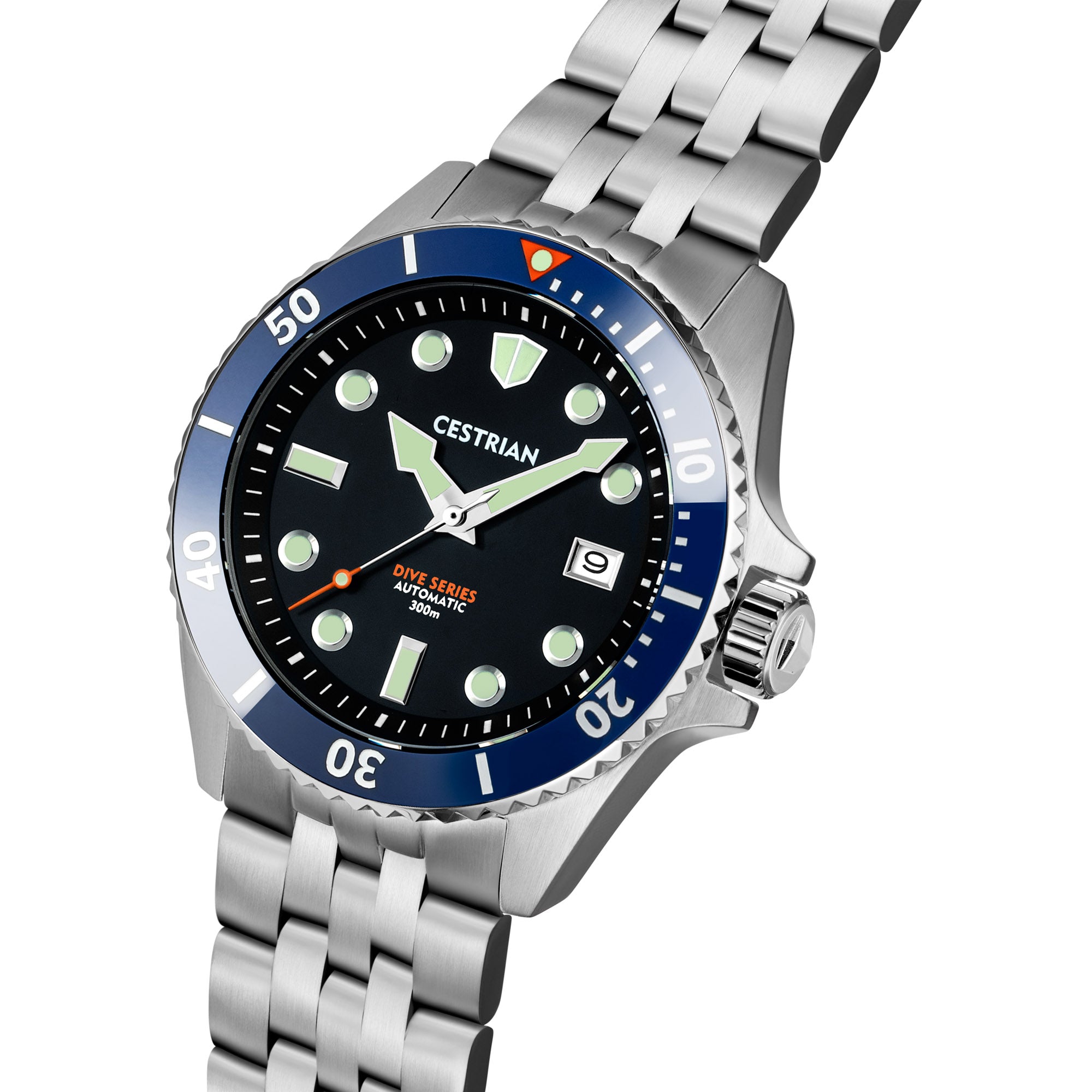 Cestrian Dive Series Black Dial Blue Ceramic Bezel Steel Bracelet Automatic 300M Mens Watch CD111B0772