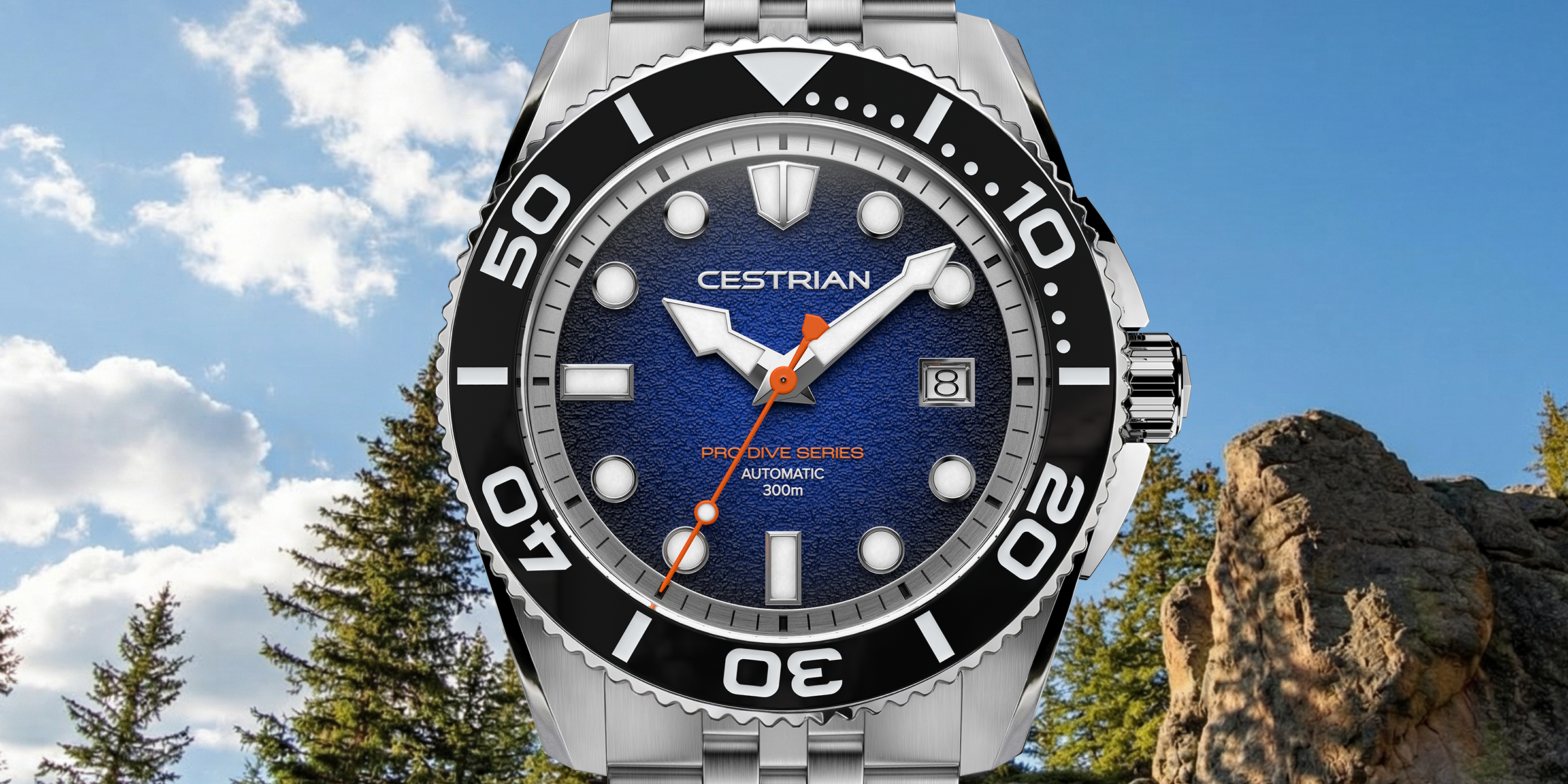 Cestrian Pro Dive Series Orange Dial Silicone Strap Automatic 300m Men's Watch CP-ORB002