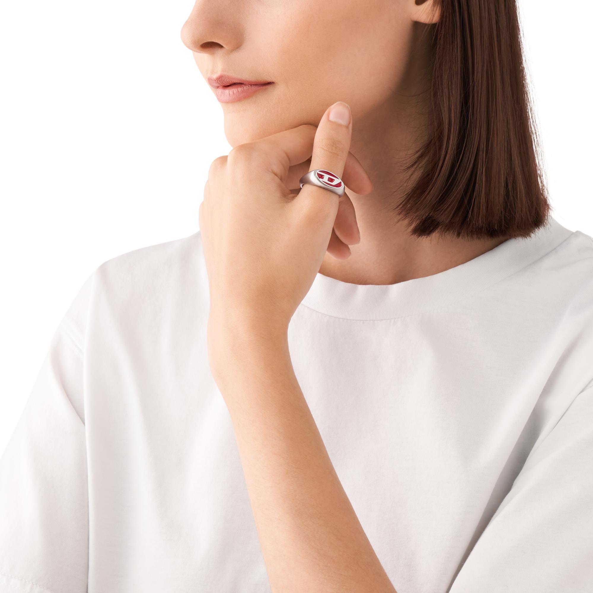Diesel Unisex Red Lacquer & Silver Stainless Steel Logo Signet Ring DX1444040-8