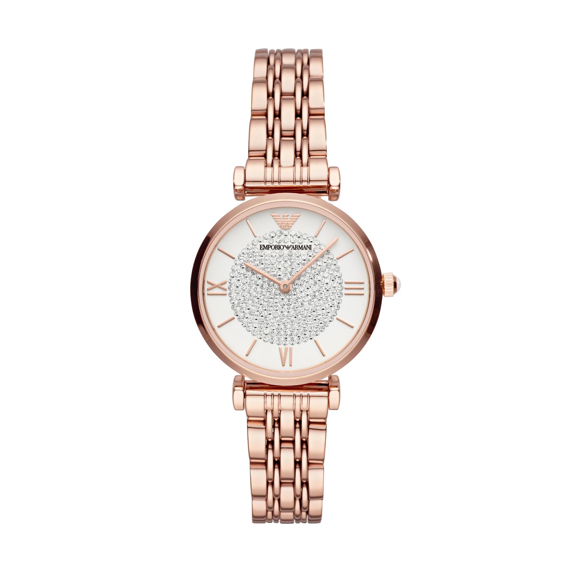 - Logo: The Emporio Armani eagle logo sits at the 12 o'clock position, maintaining the brand's luxurious touch.