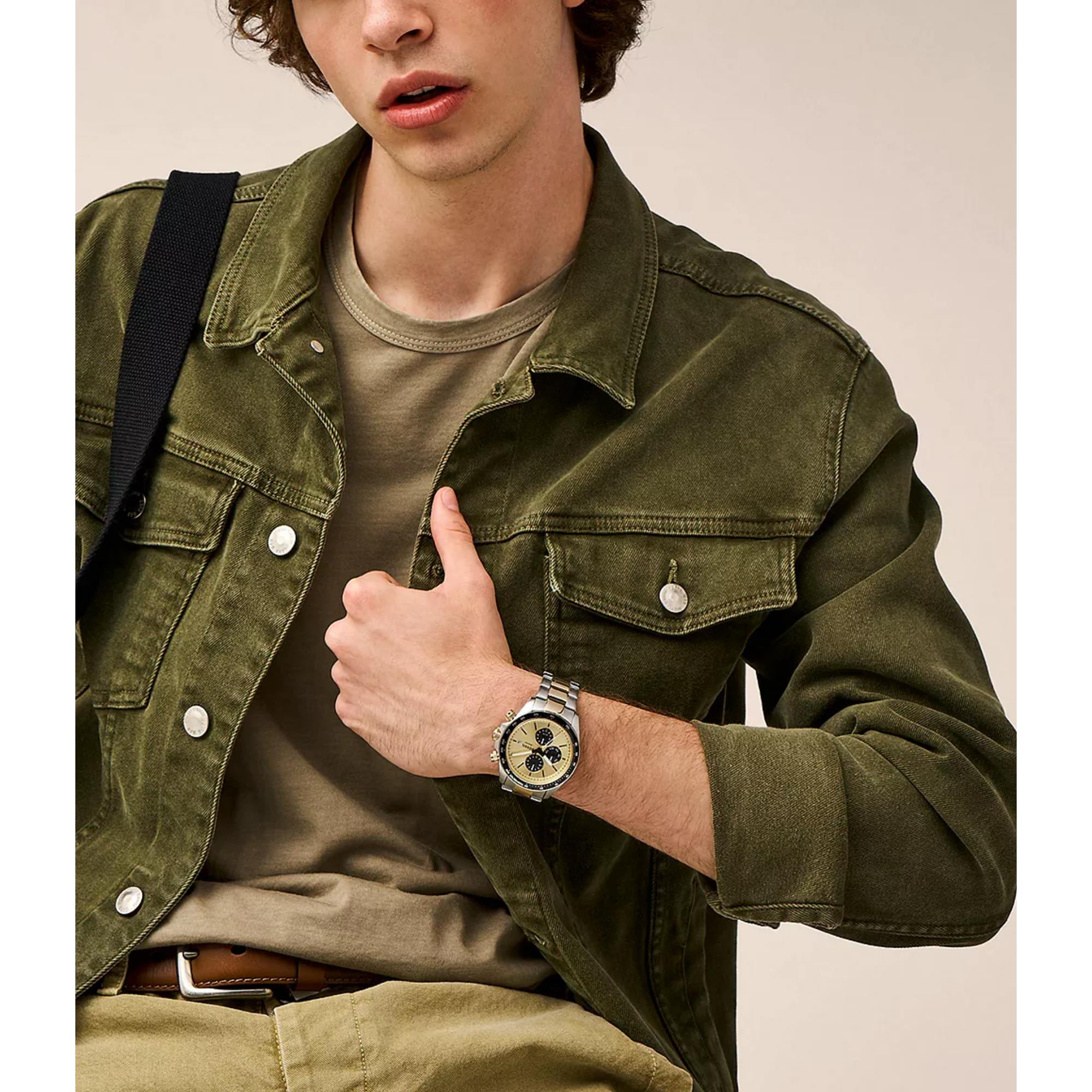 Fossil Autocross Quartz Chronograph Gold Dial Steel Strap Men's Watch FS6126