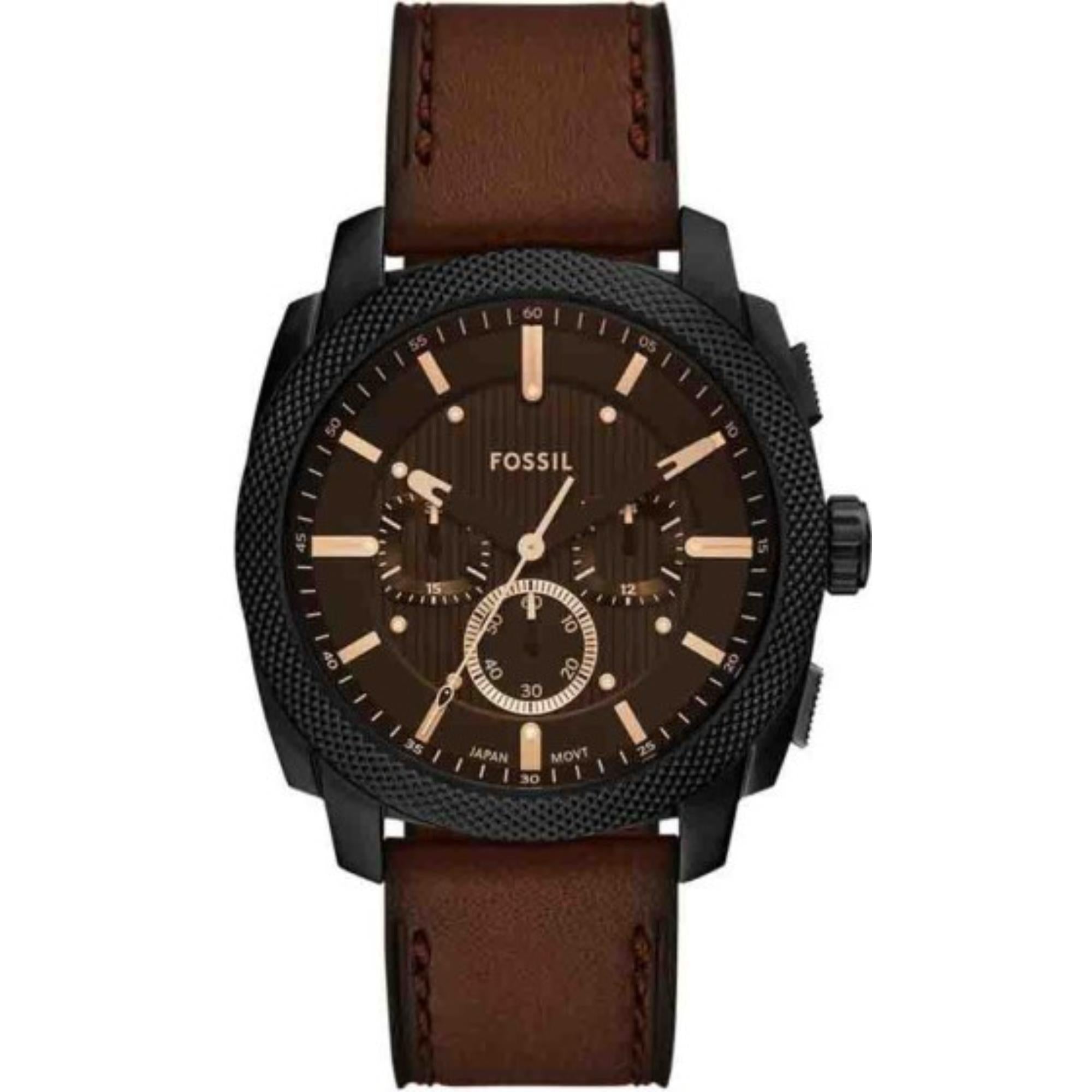 - Bezel: The textured bezel gives the watch a mechanical, industrial vibe, a hallmark of the Fossil Machine series.
