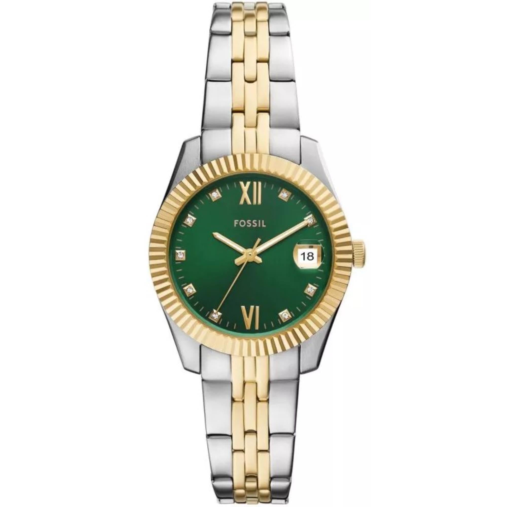 Fossil Scarlette Two-Tone Green Dial Stainless Steel Ladies Watch (ES5388)
