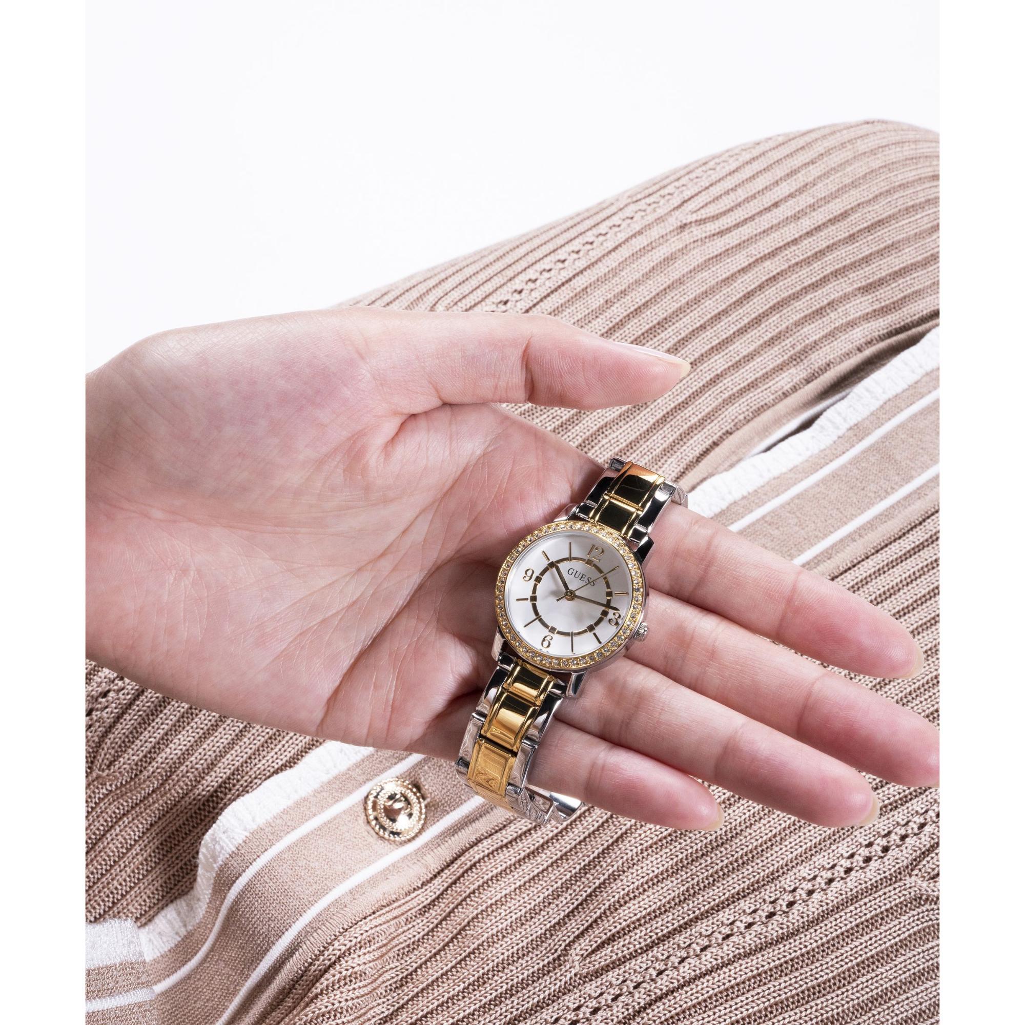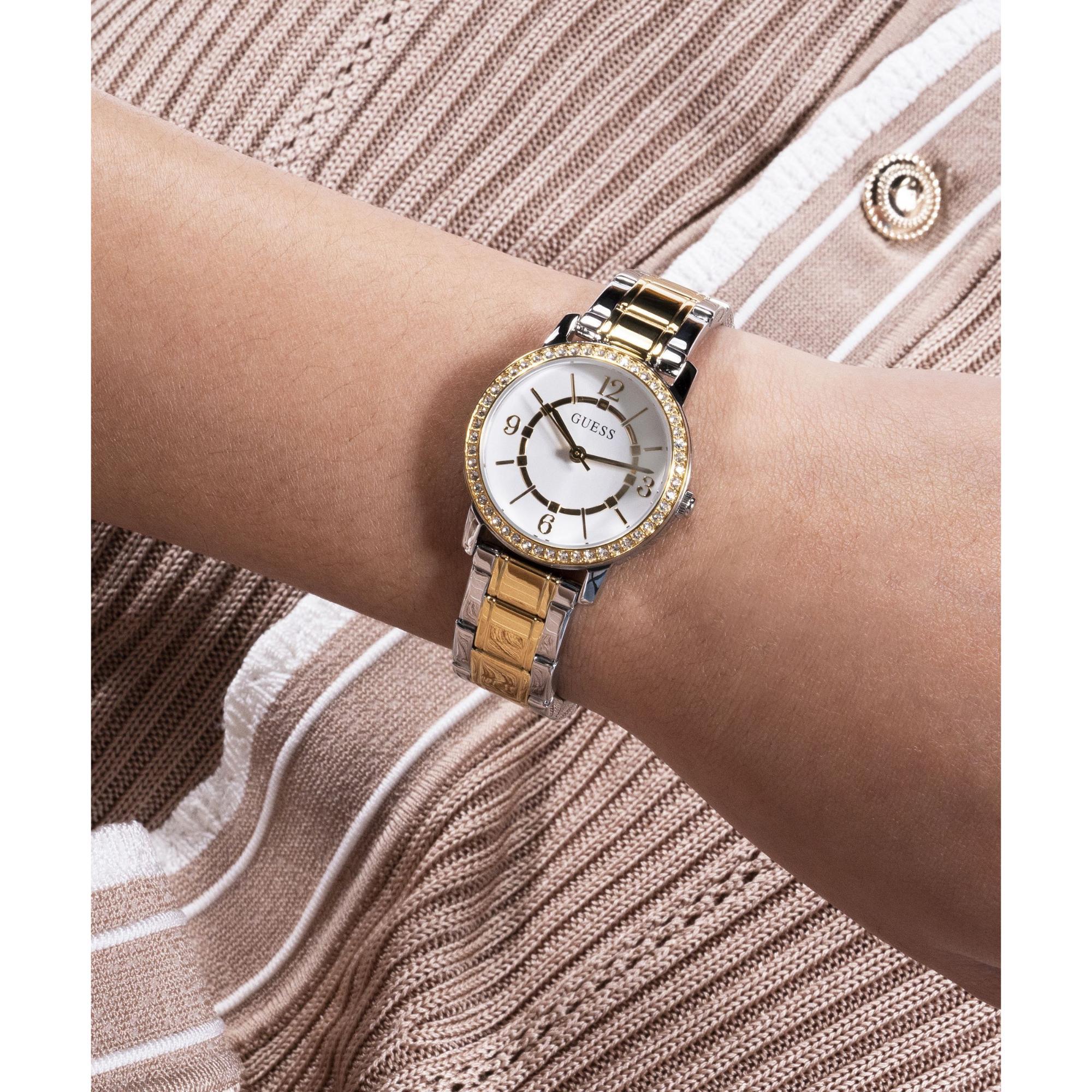 GUESS Ladies Silver/Gold Tone Two-Tone Stainless Steel Strap Analog White Dial Watch GW0468L4