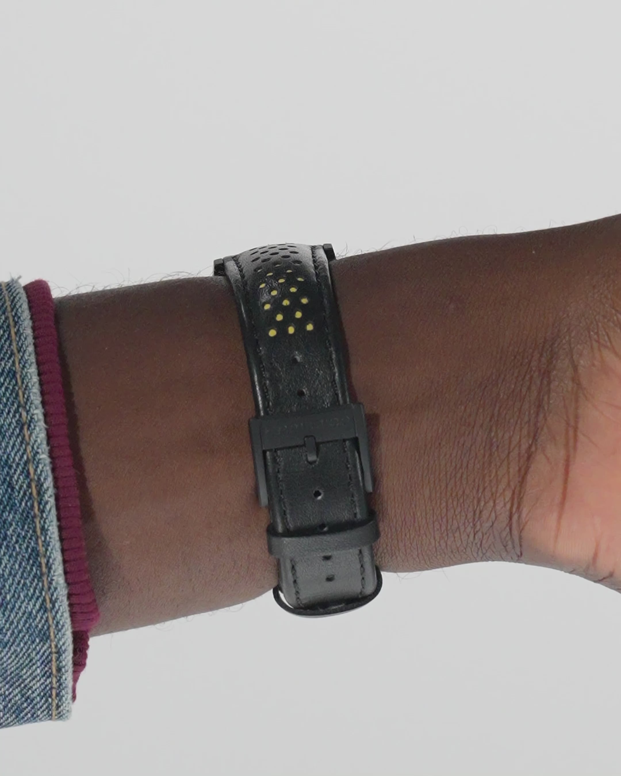 A black perforated leather strap with bold yellow stitching enhances the watch’s racing-inspired look while sitting comfortably on the wrist. The 40mm case is well balanced, offering presence without excess bulk. Despite the dynamic use of colour, the dial remains clear and legible, with clean markers and luminous hands that ensure visibility in a range of conditions.