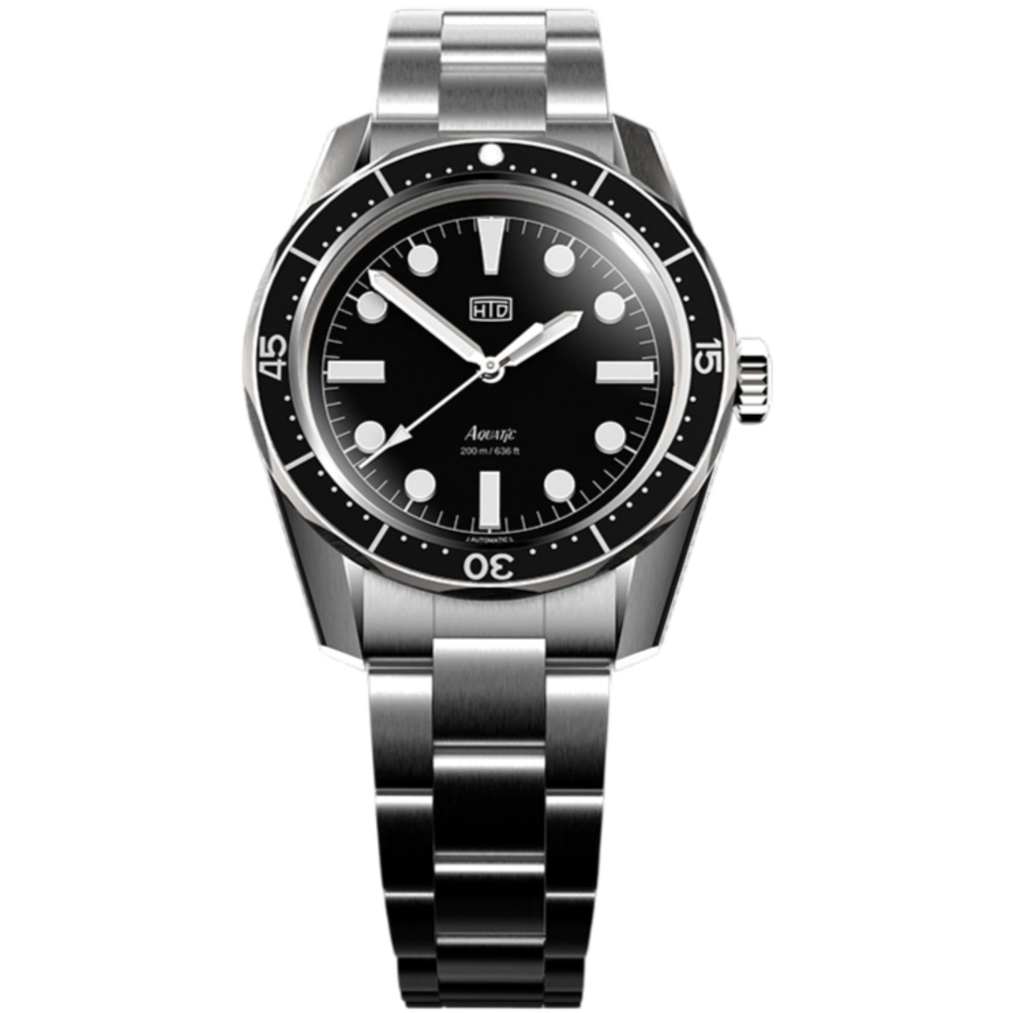 HTD Aquatic Bicchierini Automatic Black Dial Steel Strap Unisex Watch A25F09B