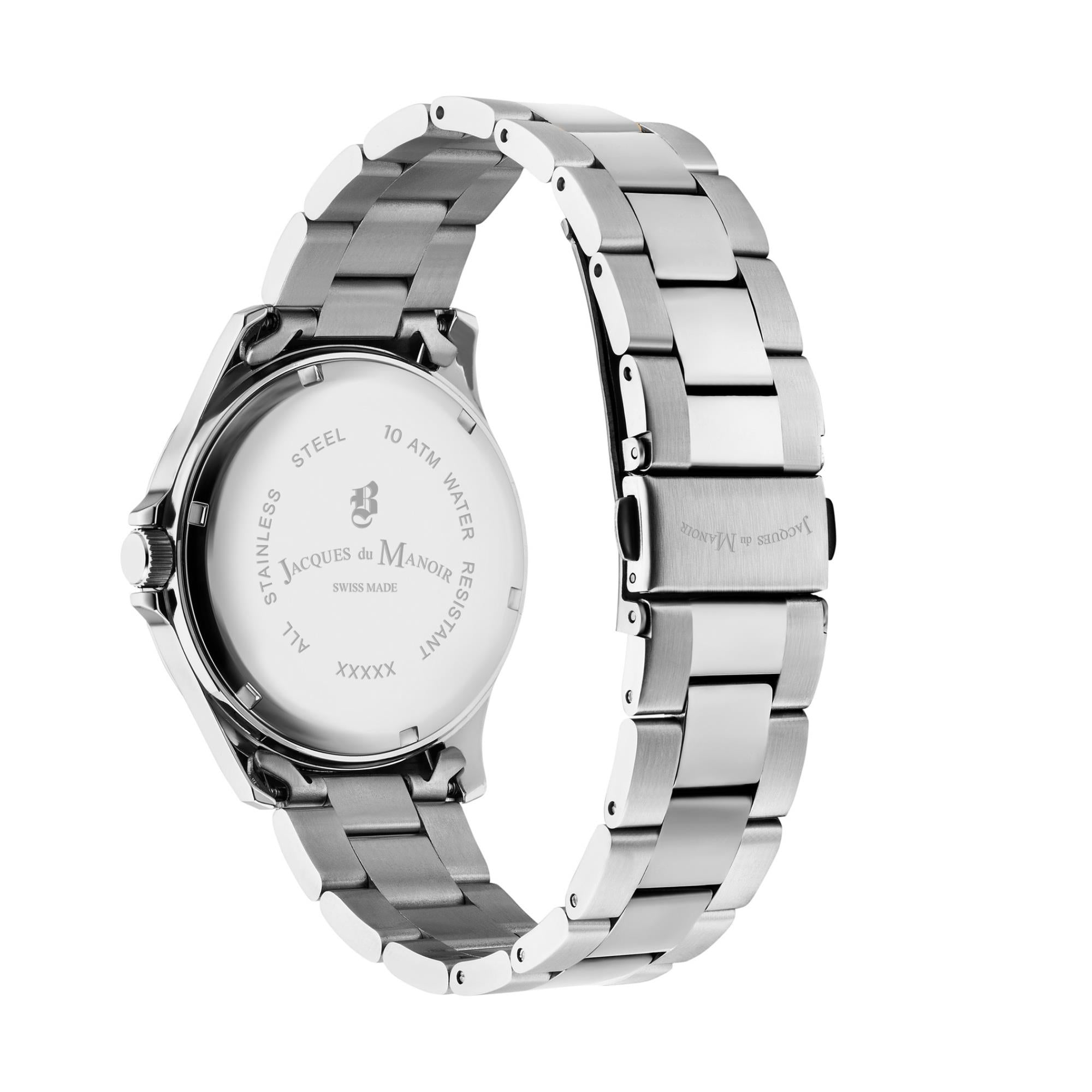 The robust stainless steel bracelet securely fastens the watch to your wrist, assuring you that it will withstand the test of time, no matter how adventurous your journey may be. Further, powered by a Swiss-made quartz movement, this timepiece ensures precision and reliability, aligning with the heritage of Swiss watchmaking.