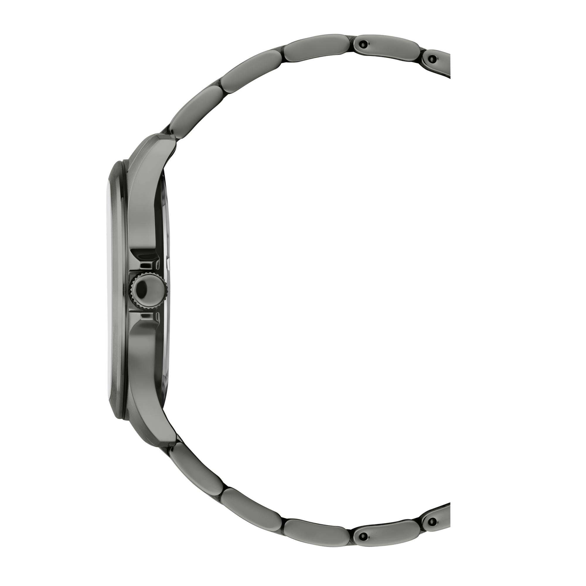 Additionally, no matter the setting, the luminescent indices and hands illuminate the darkness, providing unparalleled legibility and a touch of elegance even in dimly lit environments. The watch is securely fastened to your wrist with a robust gunmetal-plated stainless steel bracelet, which exudes both comfort and resilience, making it the perfect companion for your active lifestyle.