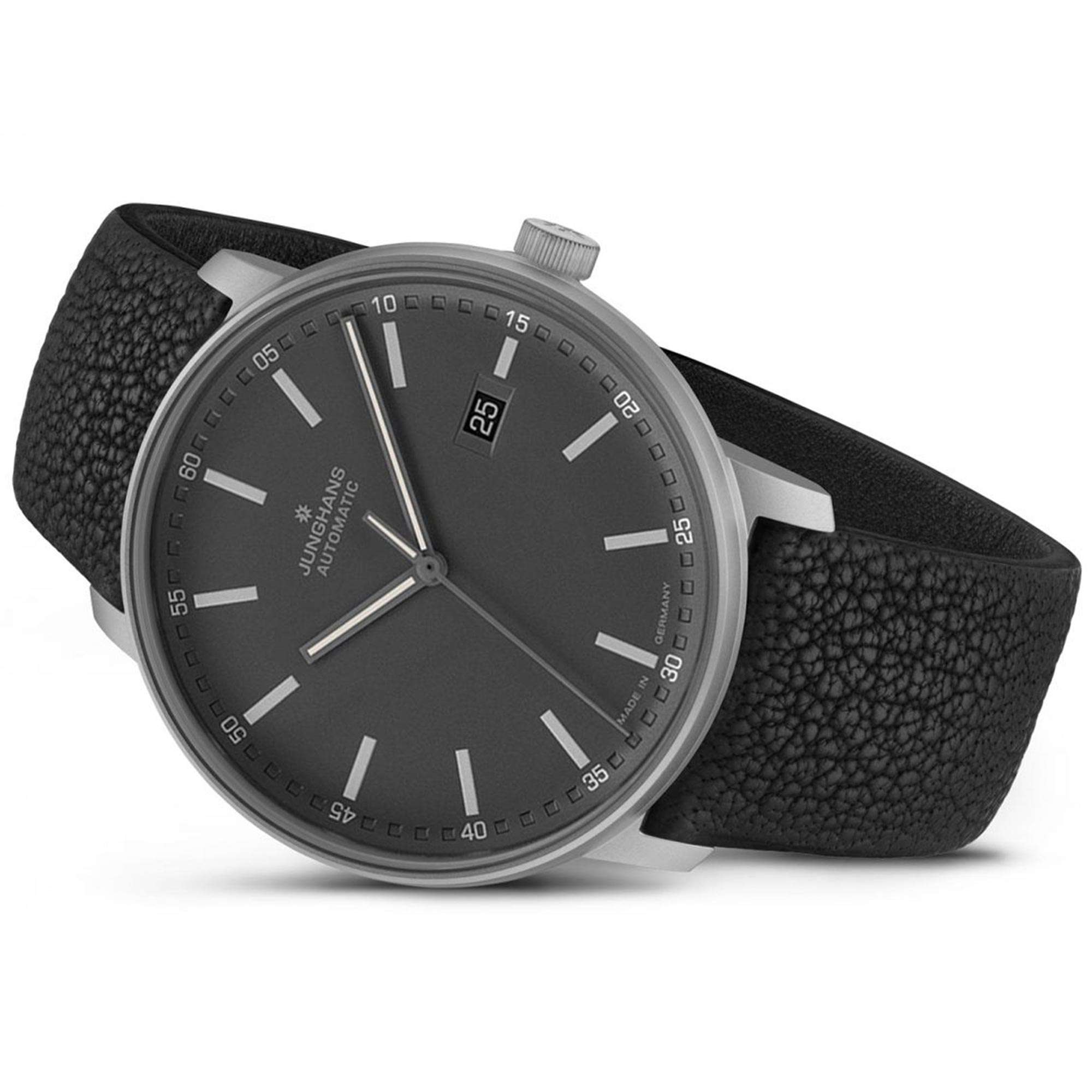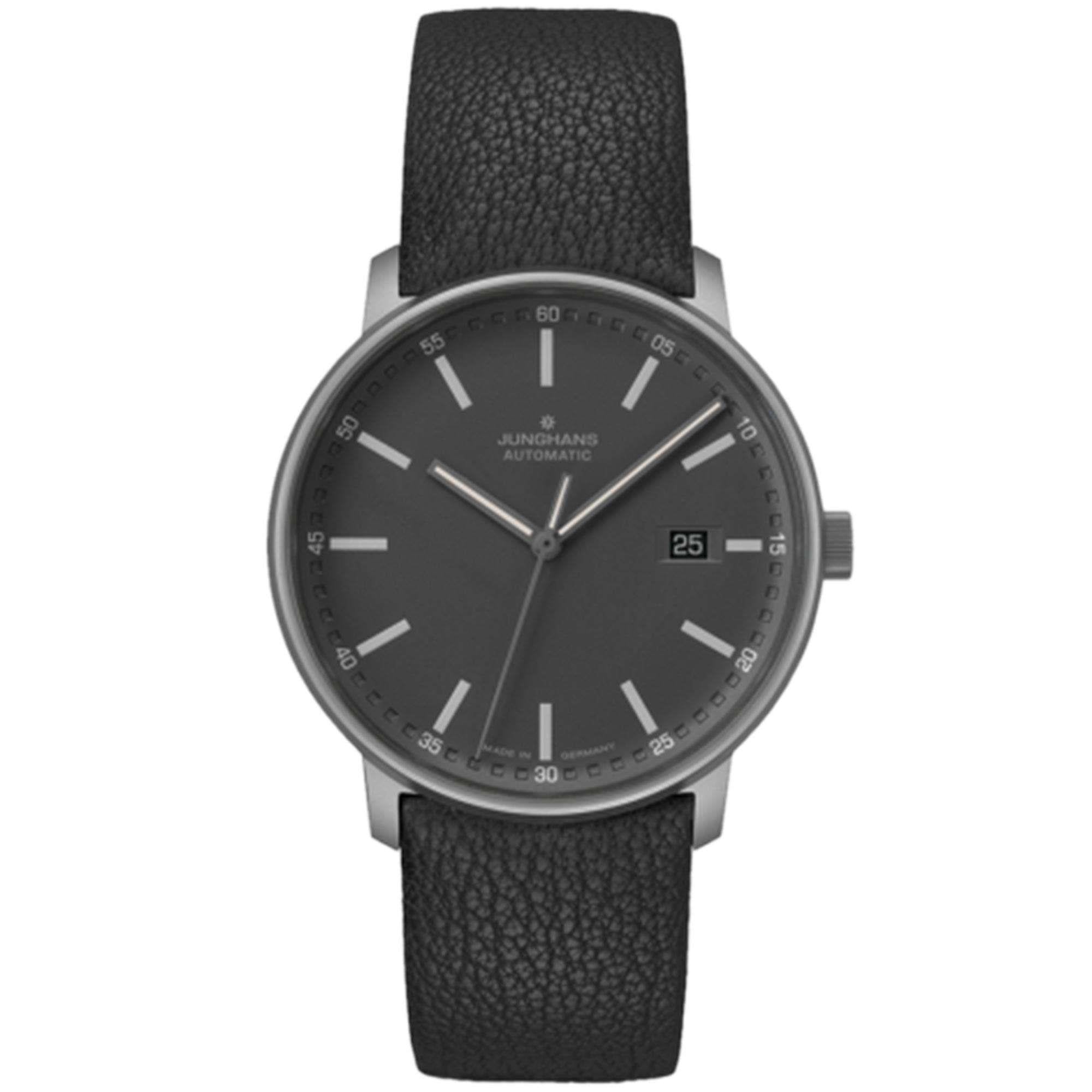 Junghans FORM A Titan Automatic Black Dial Leather Strap Mens Watch 027/2001.00