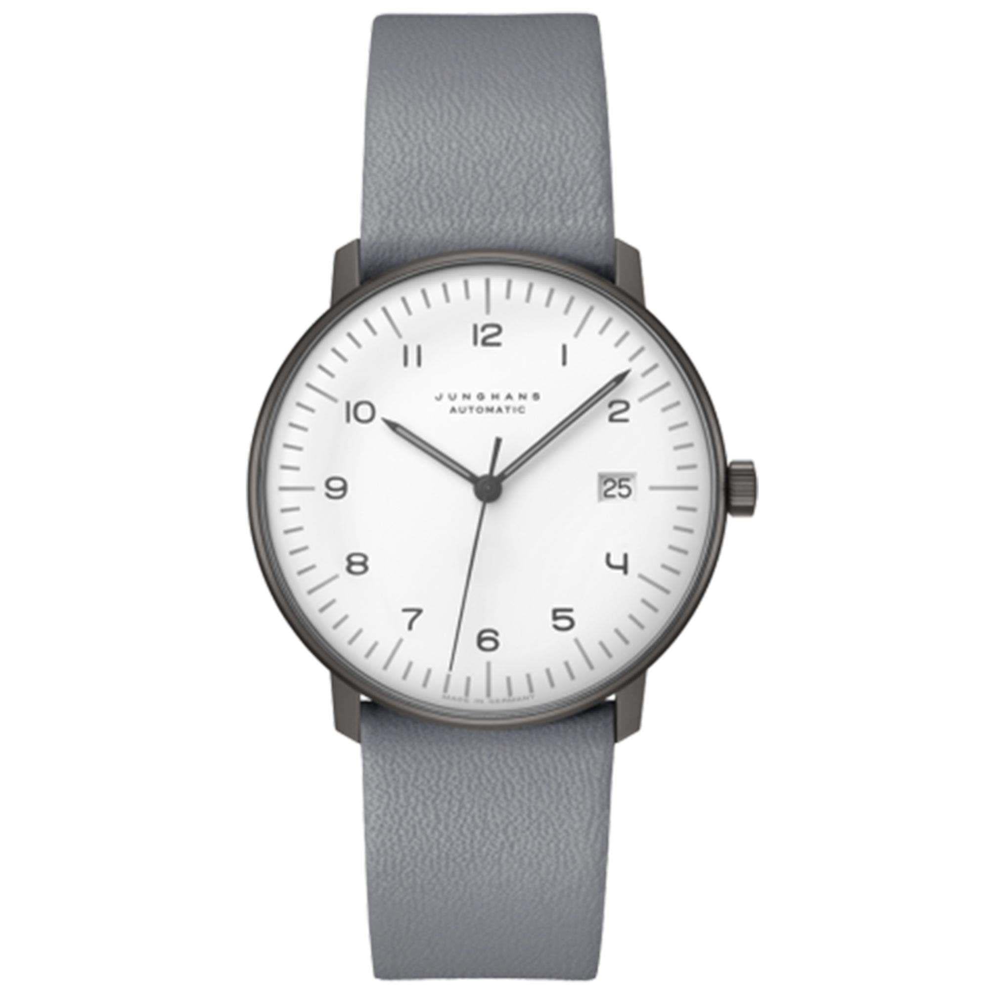 Junghans Max Bill Automatic White Dial Grey Leather Strap Mens Watch 027/4007.04