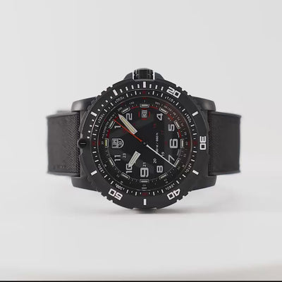 The Luminox ICE-SAR 1080 Series XL.1081 exudes rugged purpose and understated tactical style, a watch built with survival, adventure, and reliability at its core. Its matte black CARBONOX™ case (45mm diameter) gives it a bold yet lightweight presence on the wrist, paired with a matching black rubber-textile strap for comfort and durability.