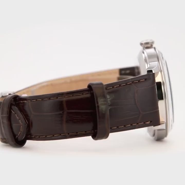 In addition to its elegant design, the watch includes a practical multi-function display: a date window at 3 o’clock, a 24-hour subdial at 5, and a day-of-the-week indicator at 10. With five hands and dual minute markers along the outer rim, the layout adds depth and movement to the dial delivering both visual interest and everyday functionality. It's a refined piece that blends tradition and innovation, making it a standout addition to any collection.