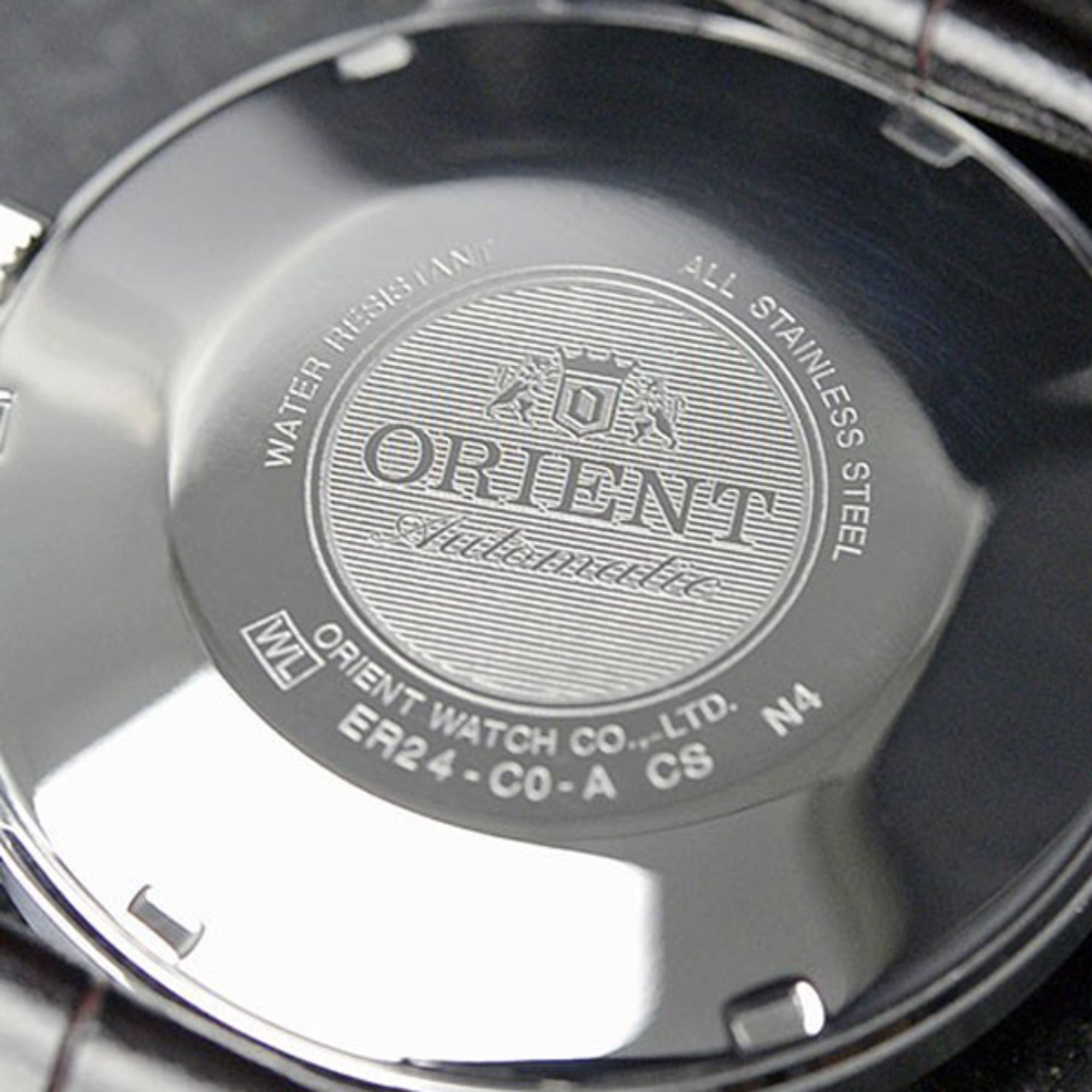 Orient’s calibre F6724 automatic movement powers this timepiece. It is a self winding movement that consists of 22 jewels and offers a power reserve of 40 hours. It has an accuracy of +25/-15 seconds per day. It is water resistant to 30 metres, meaning it should not be exposed to anything more than light splashes of water.