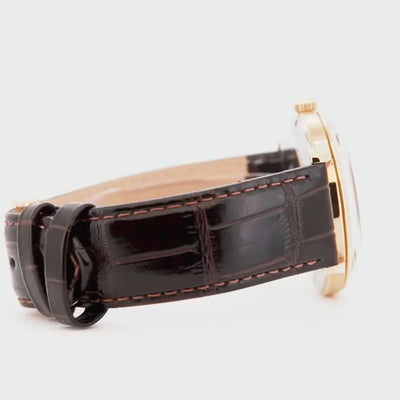 The 40.5mm stainless-steel case is 11.8mm thick, lending it a balanced wrist presence noticeable without being bulky. With a lug-to-lug length of 46.8mm and a 21mm lug width pairing with a leather strap, the watch sits comfortably under a cuff yet remains elegant enough for formal wear. The leather strap fastens with a traditional buckle, emphasising the watch’s classic credentials.