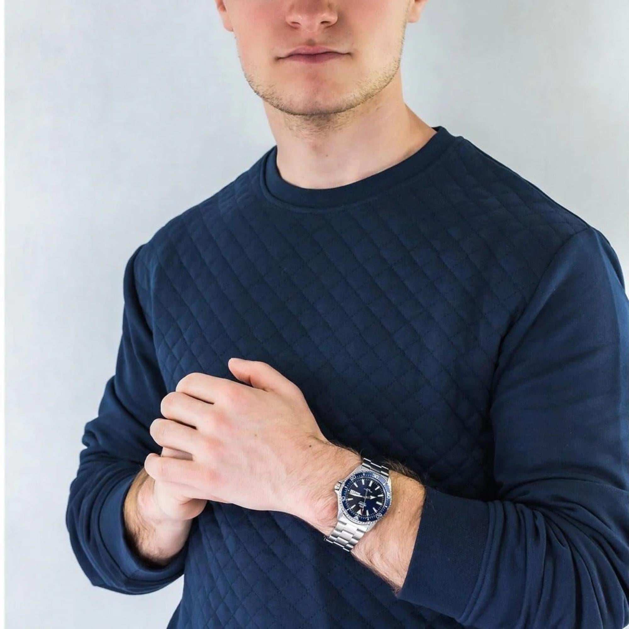 - Unidirectional Rotating Bezel: A matching blue bezel with white markers provides functionality for dive timing and enhances the sporty look.