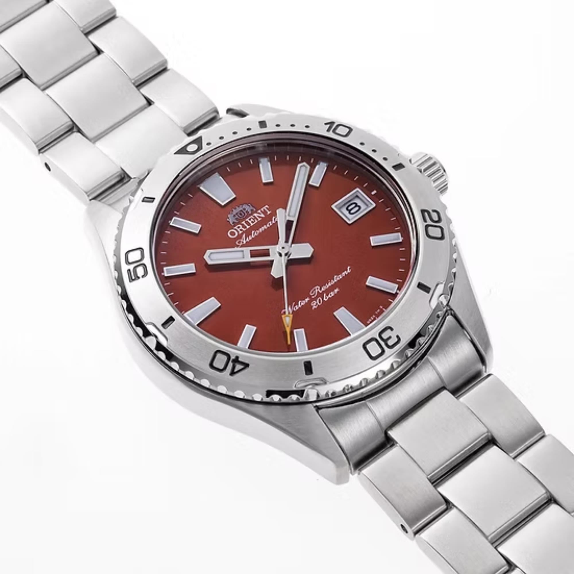 Orient Mako Automatic Red Dial Stainless Steel Strap Men's Dive Watch RA-AC0Q09R30B