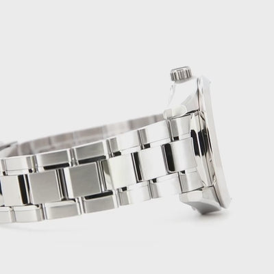 Protected by sapphire crystal with dual-surface anti-reflective treatment, the watch offers excellent clarity and durability. With a water resistance of 100 metres, it handles everyday use and brief water exposure confidently. The polished and brushed finishes on the case and bracelet add to its sophisticated appeal.