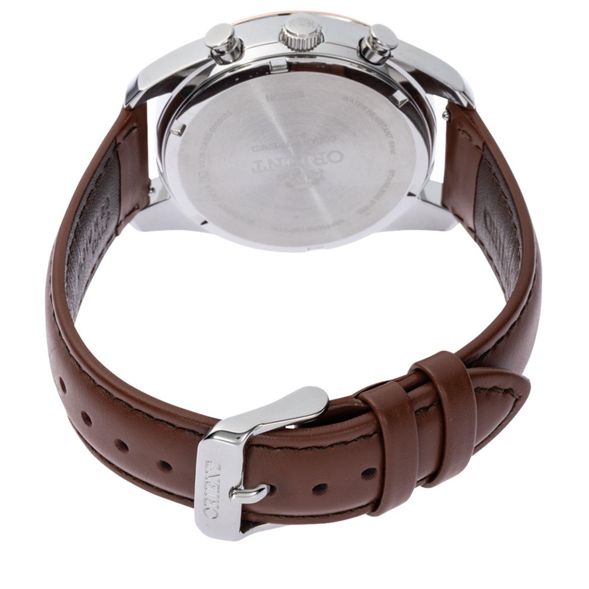 Orient Contemporary Stretto Date Solar Chronograph White Dial Brown Leather Strap Men’s Watch RA-TX0306S10B