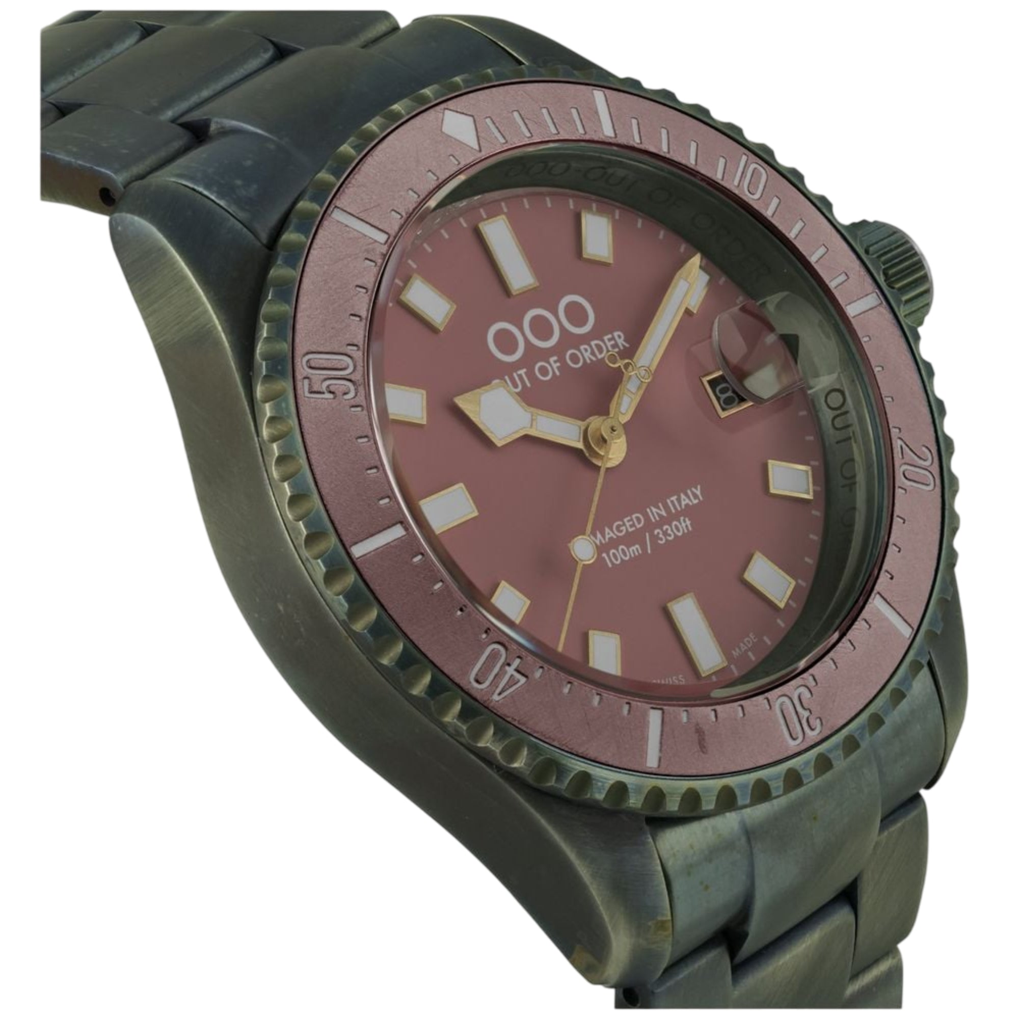 Out of Order Casanova Ultra Distressed Quartz Pink Dial Steel Strap Men's Watch OOO.001-27.CI