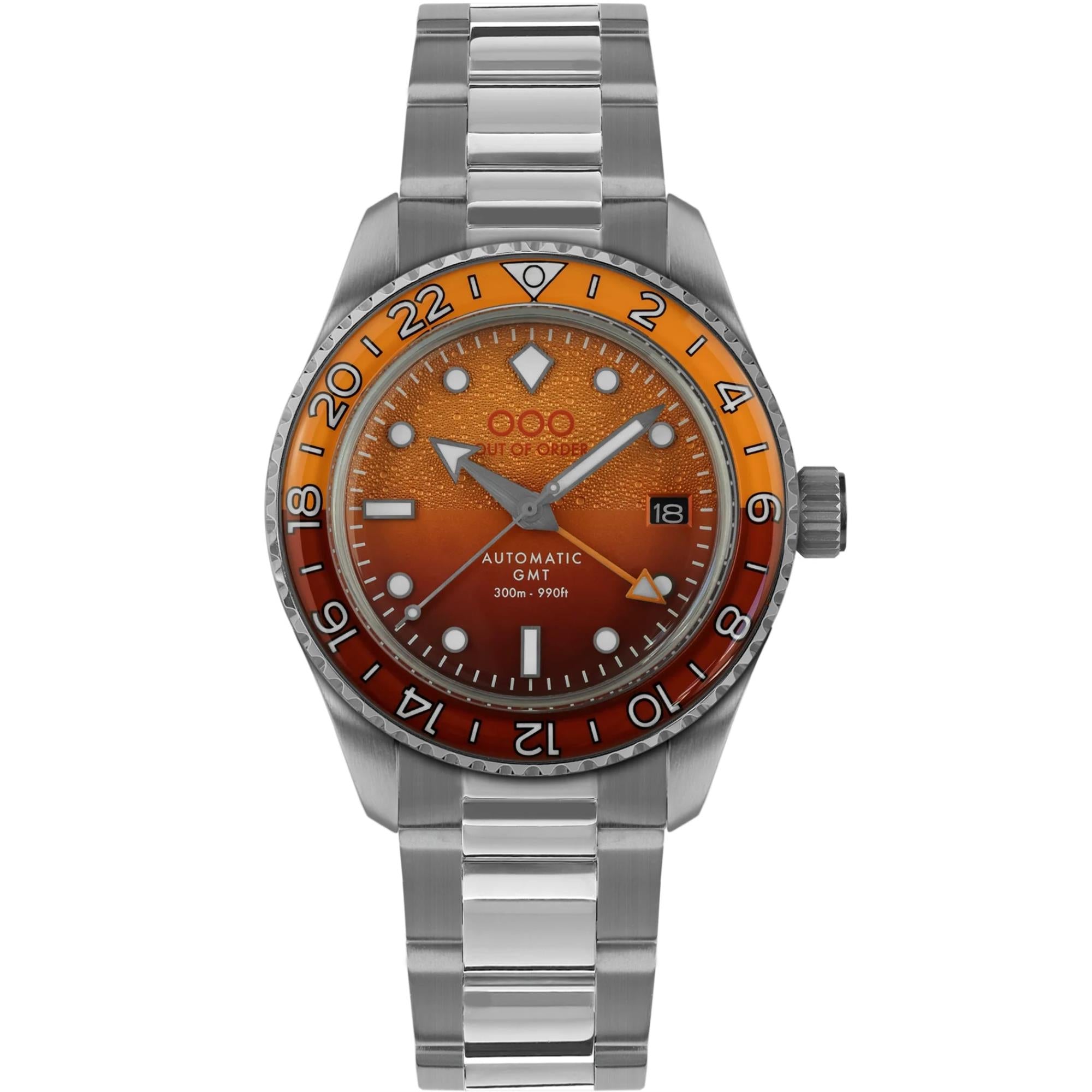 The Out Of Order Negroni Shaker Automatic GMT OOO.001-25.NE.BAND.SS proves that function and fashion can go hand in hand. With its unmistakable orange dial and Swiss engineering, it’s a bold companion for the globally minded, style-conscious individual.