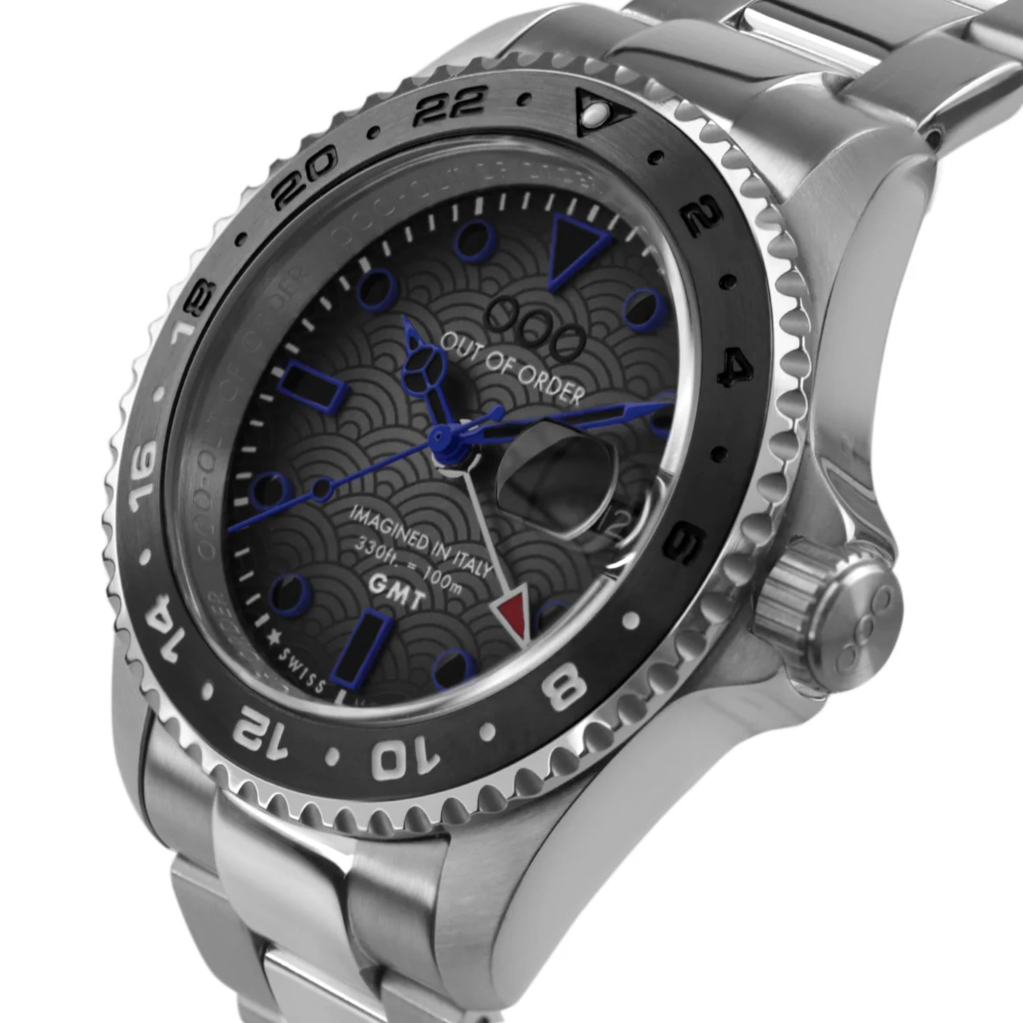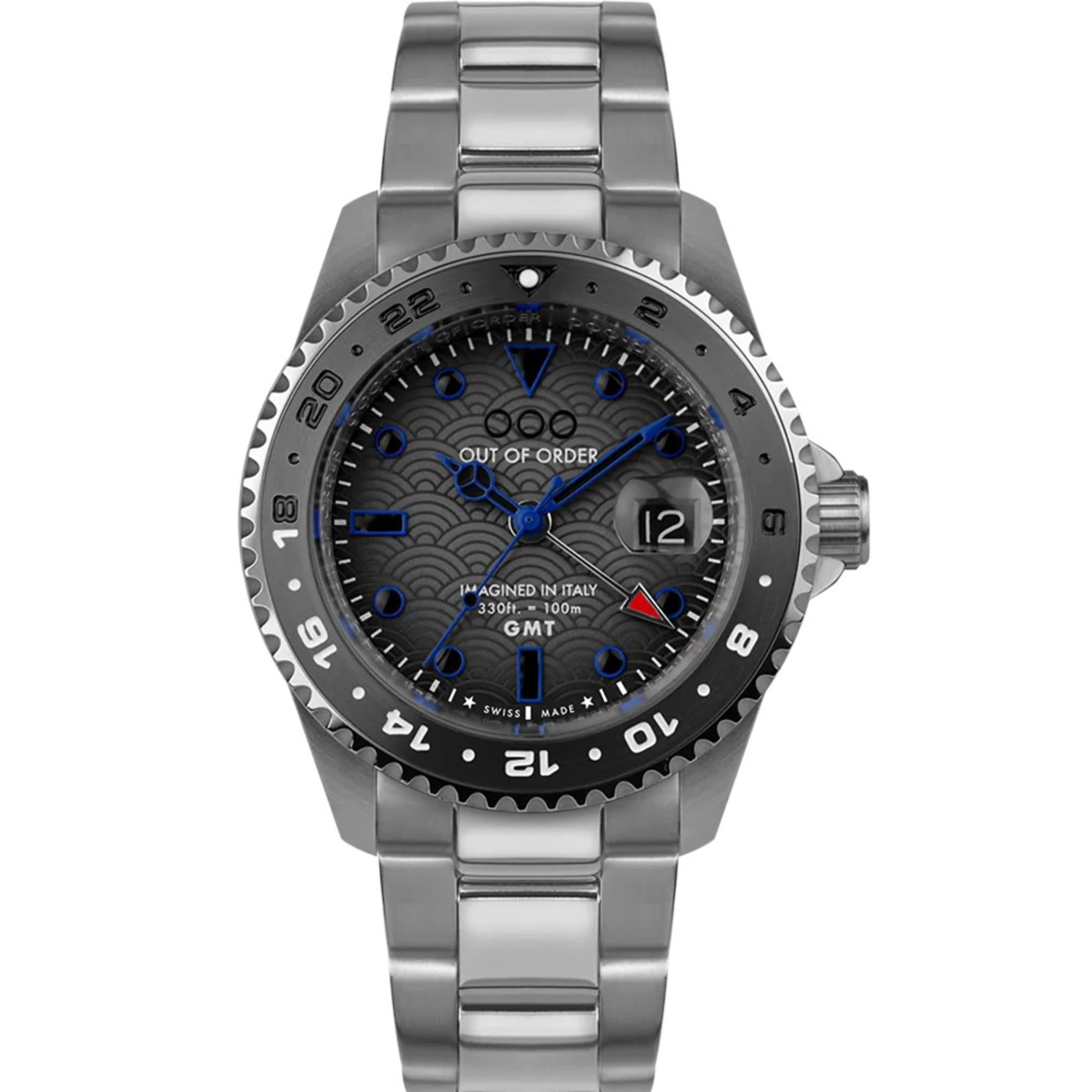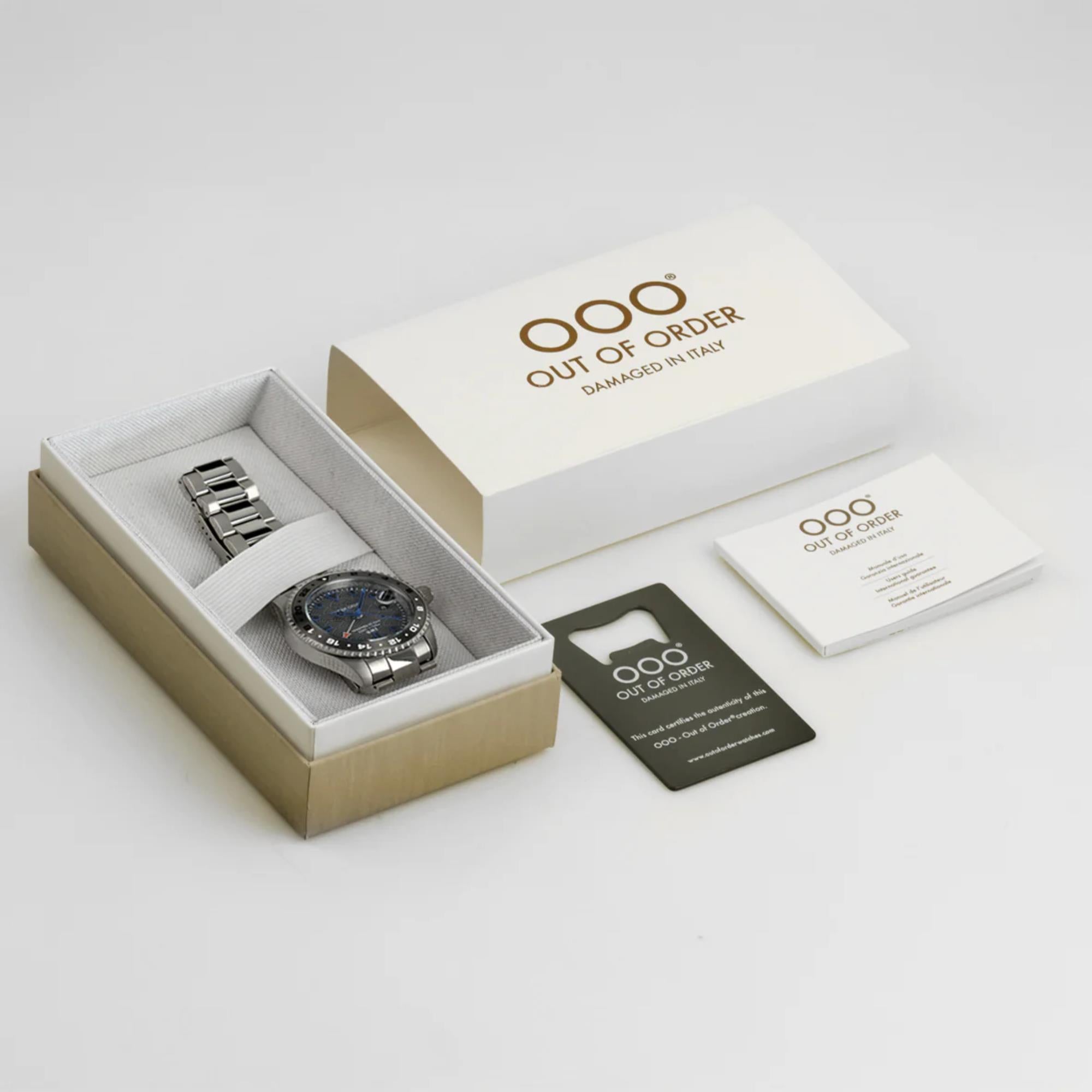 The Out of Order Swiss Made OOO.001-19.TS.SS combines industrial design with Swiss precision. Featuring an ultra-brushed stainless steel case and bracelet, and a textured grey dial, this timepiece delivers rugged sophistication with reliable performance—built to stand out and endure.