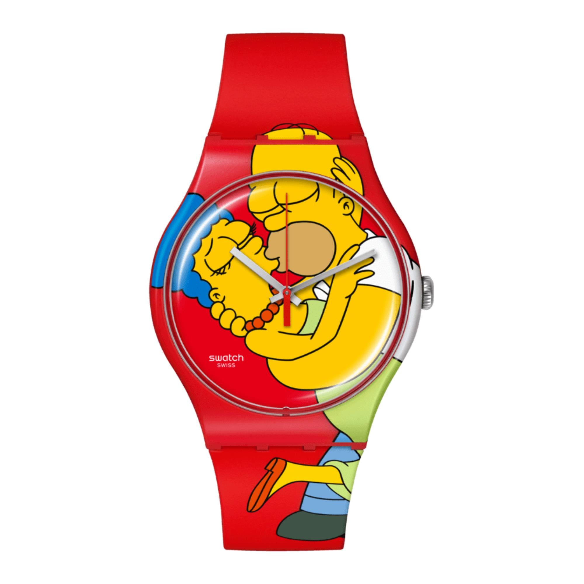 Swatch The Simpsons Collection Sweet Embrace Quartz Red Dial Silicone Strap Unisex Watch SO29Z120