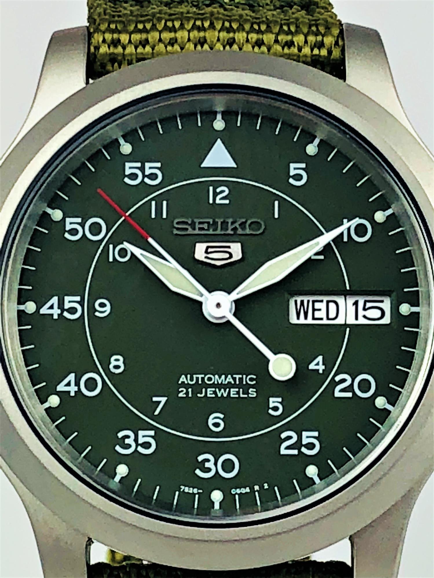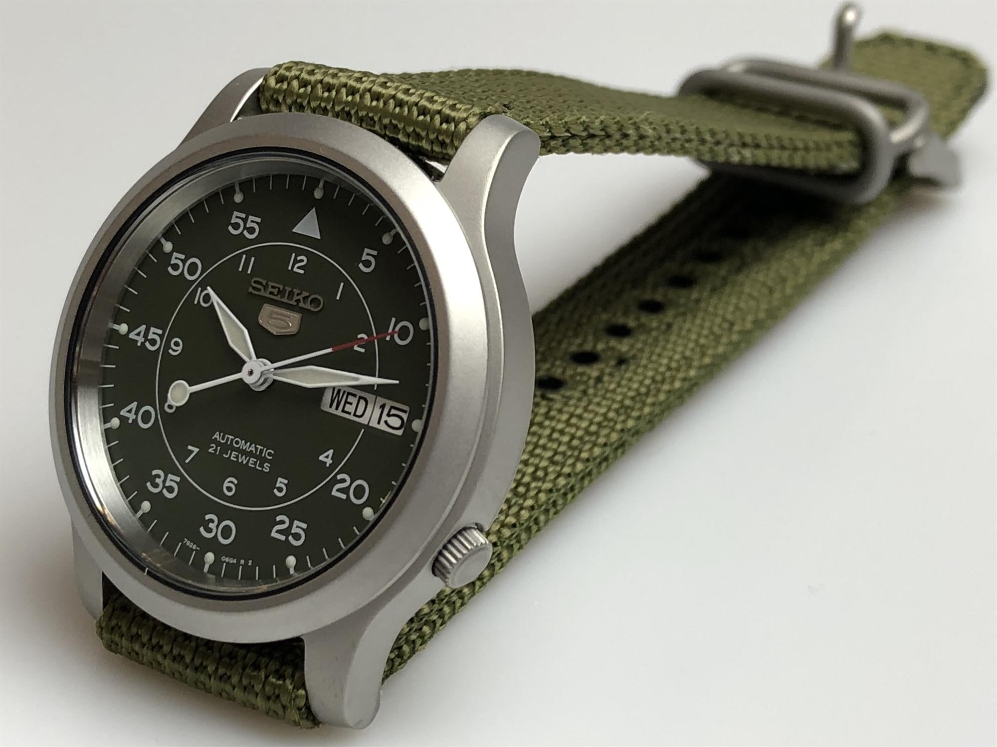 Seiko 5 Automatic Green Dial Green NATO Nylon Strap Mens Watch SNK805K2