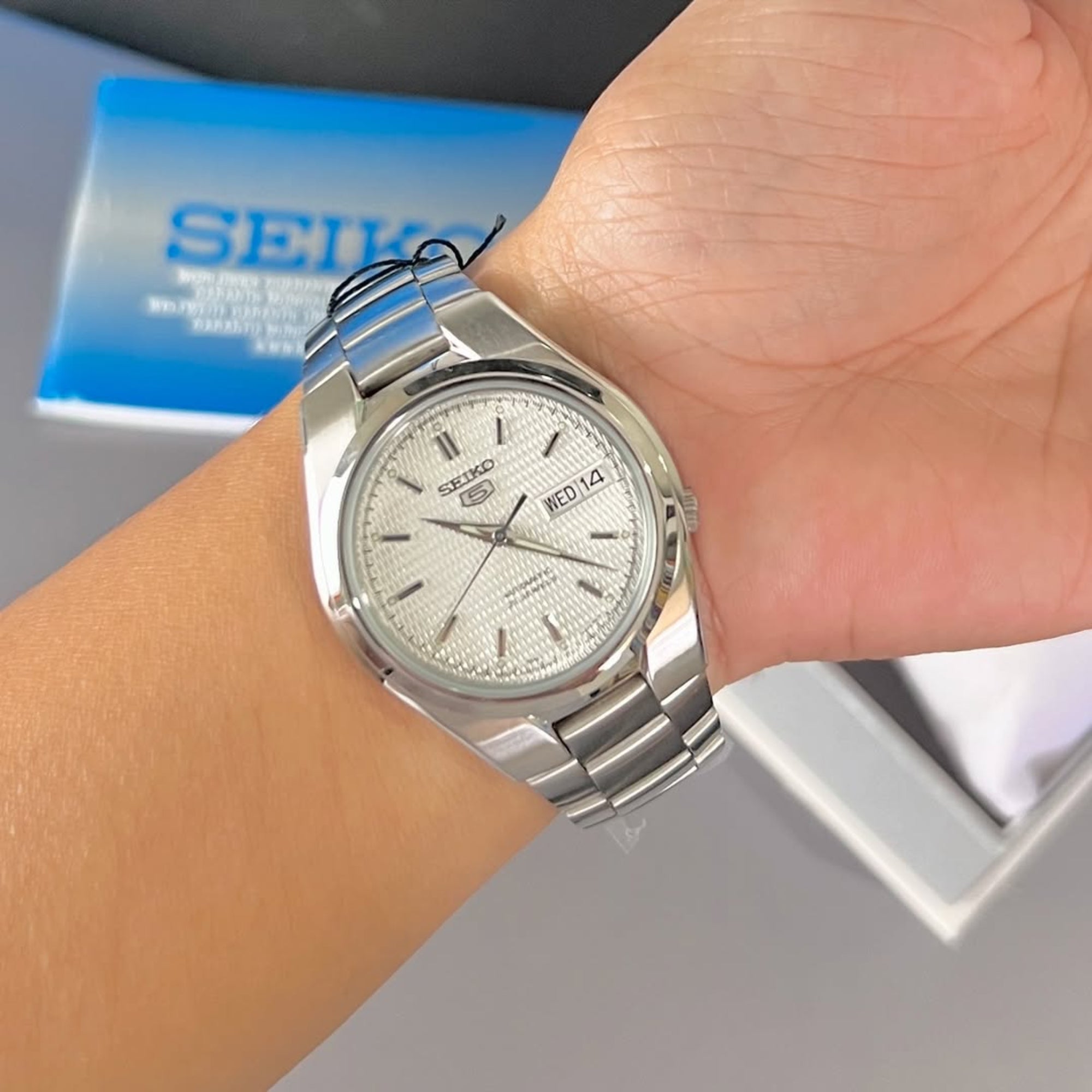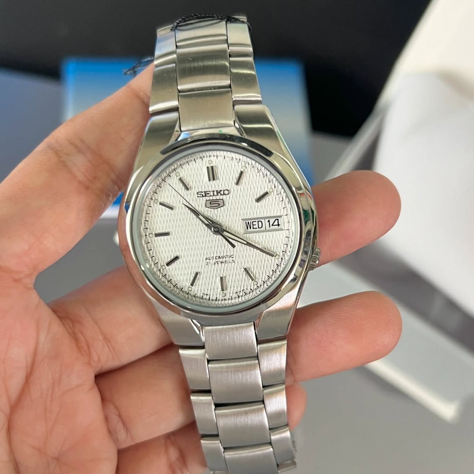 Seiko 5 Automatic White Dial Stainless Steel Bracelet Mens Watch SNK601K1