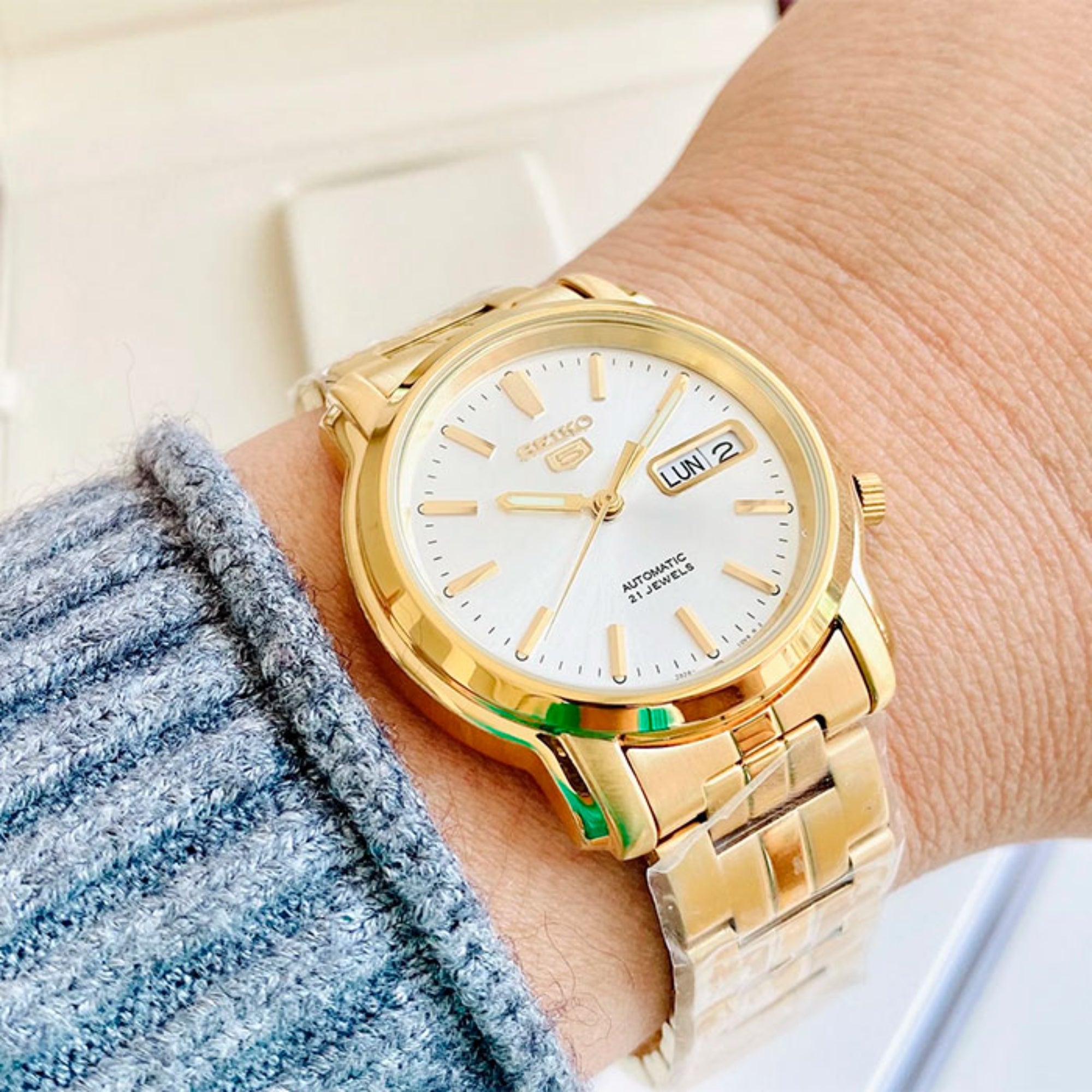 The Seiko 5 SNKK74K1 is a refined and functional automatic watch, featuring a sleek silver dial, gold-tone details, and a durable stainless steel bracelet. With its Seiko 7S26 movement, 40-hour power reserve, and classic styling, it’s a timeless and affordable choice for those who appreciate heritage and reliability in their wristwear.