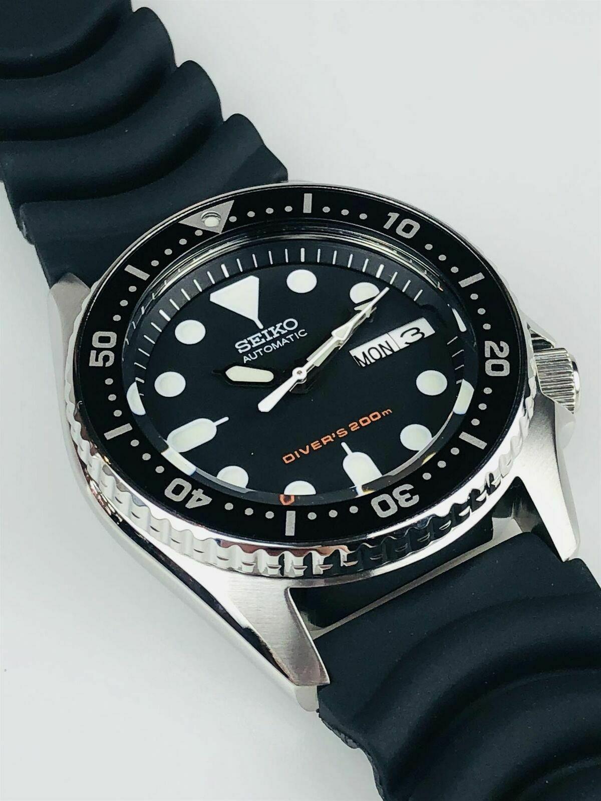 This Seiko SKX013 is powered by Seiko’s 7S26 calibre automatic movement. When the movement is fully charged it has a power reserve of 41 hours and an accuracy of -20/+40 seconds per day. The movement is non-hacking and non-handwind. It is water resistant to 200 metres, which means that it can be used when diving.