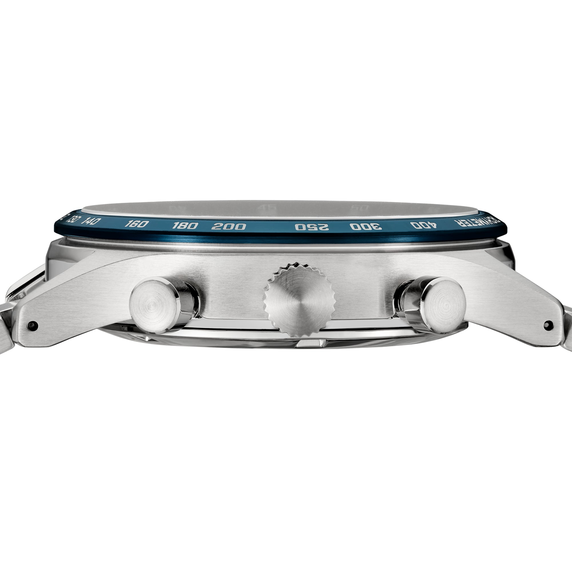 - Bezel: Fixed Stainless Steel Bezel with Tachymeter Scale – Measures speed over a fixed distance.