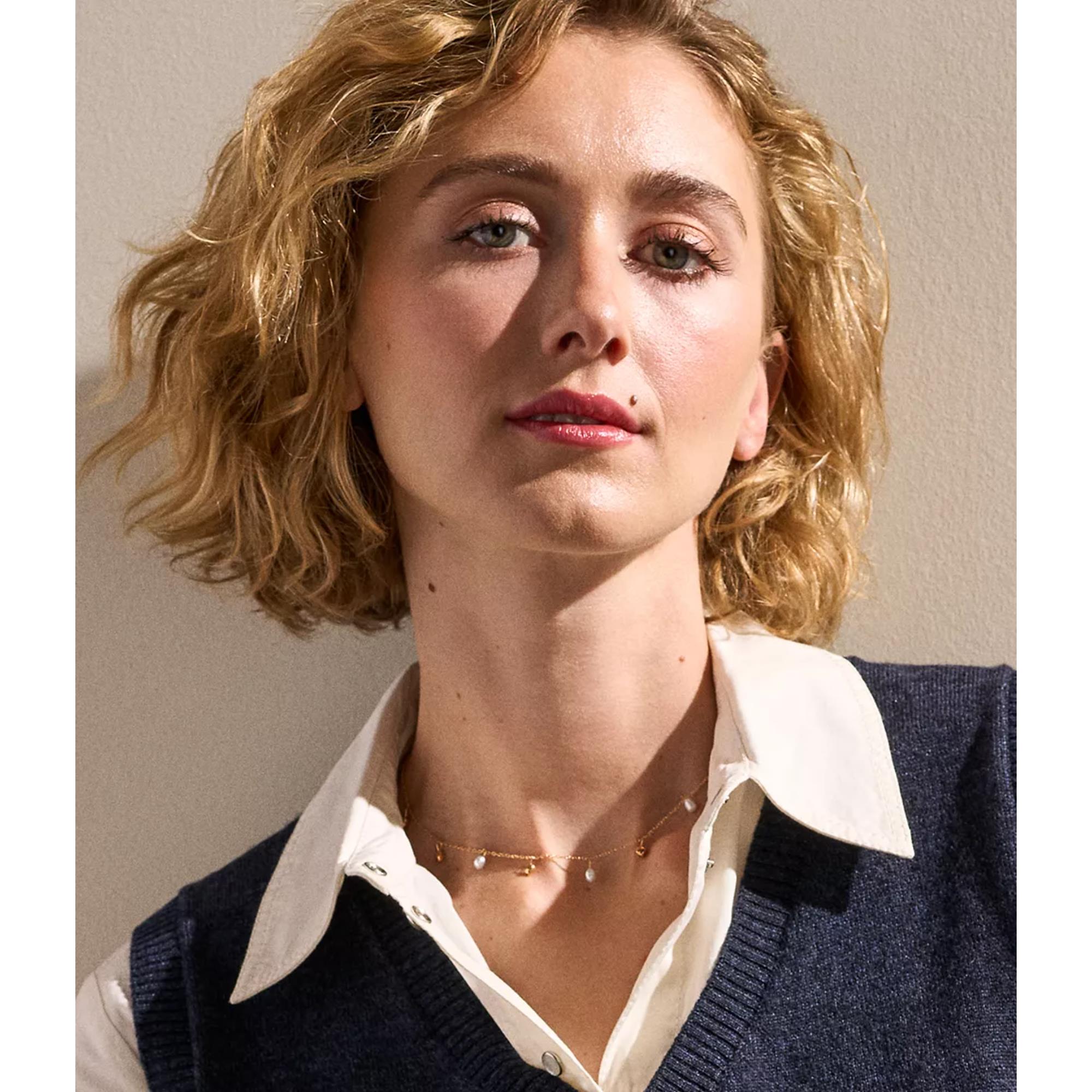 This necklace is for individuals who appreciate minimalist and elegant jewellery with a touch of classic sophistication. It is ideal for those seeking a versatile accessory that can elevate both casual and formal attire. It particularly appeals to wearers who favour gold-tone finishes and the timeless beauty of pearls, seeking a piece that offers understated luxury and effortless style.
