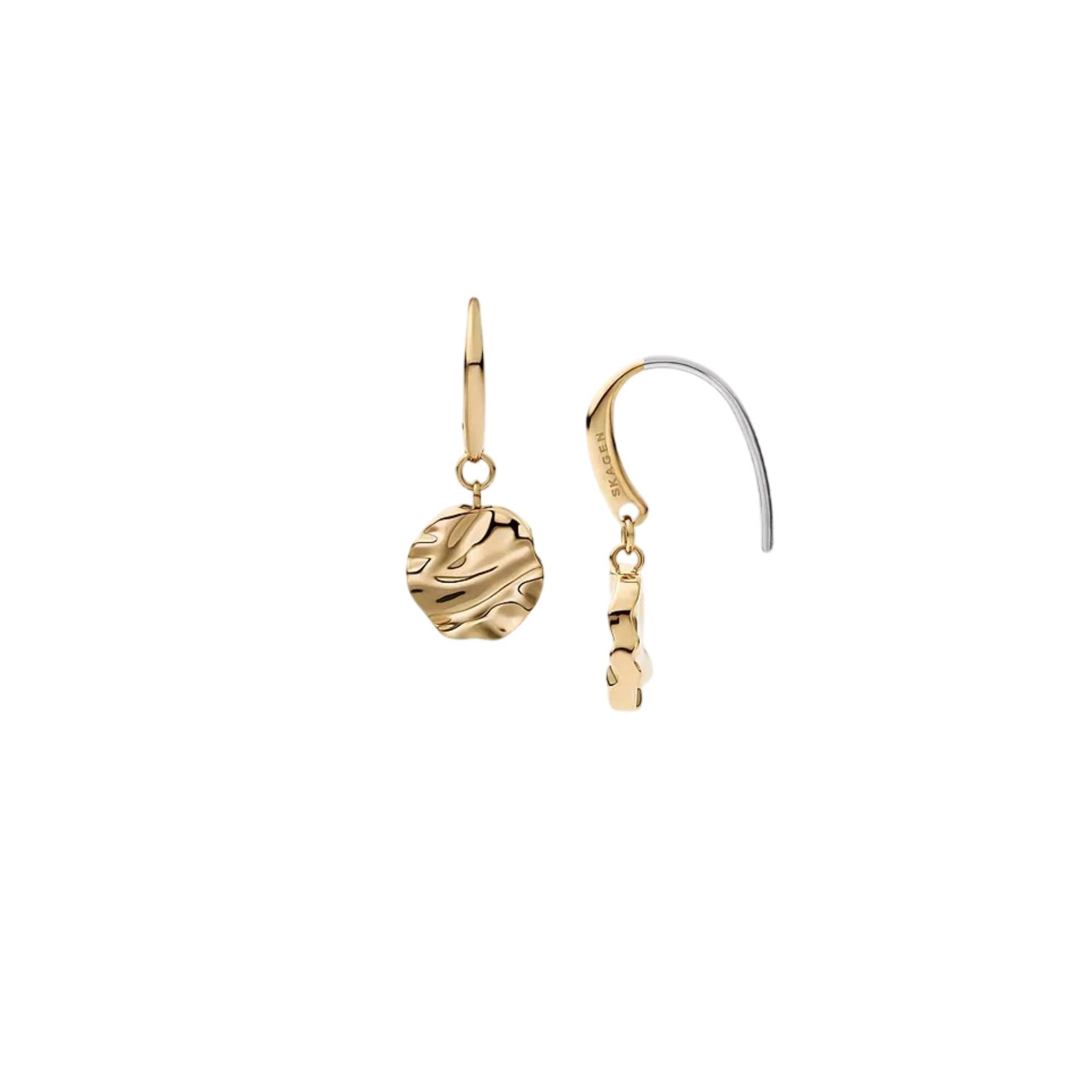 Skagen Moderne Stak Gold-Tone Stainless Steel Wave Medallion Drop Women's Earrings SKJ1883710