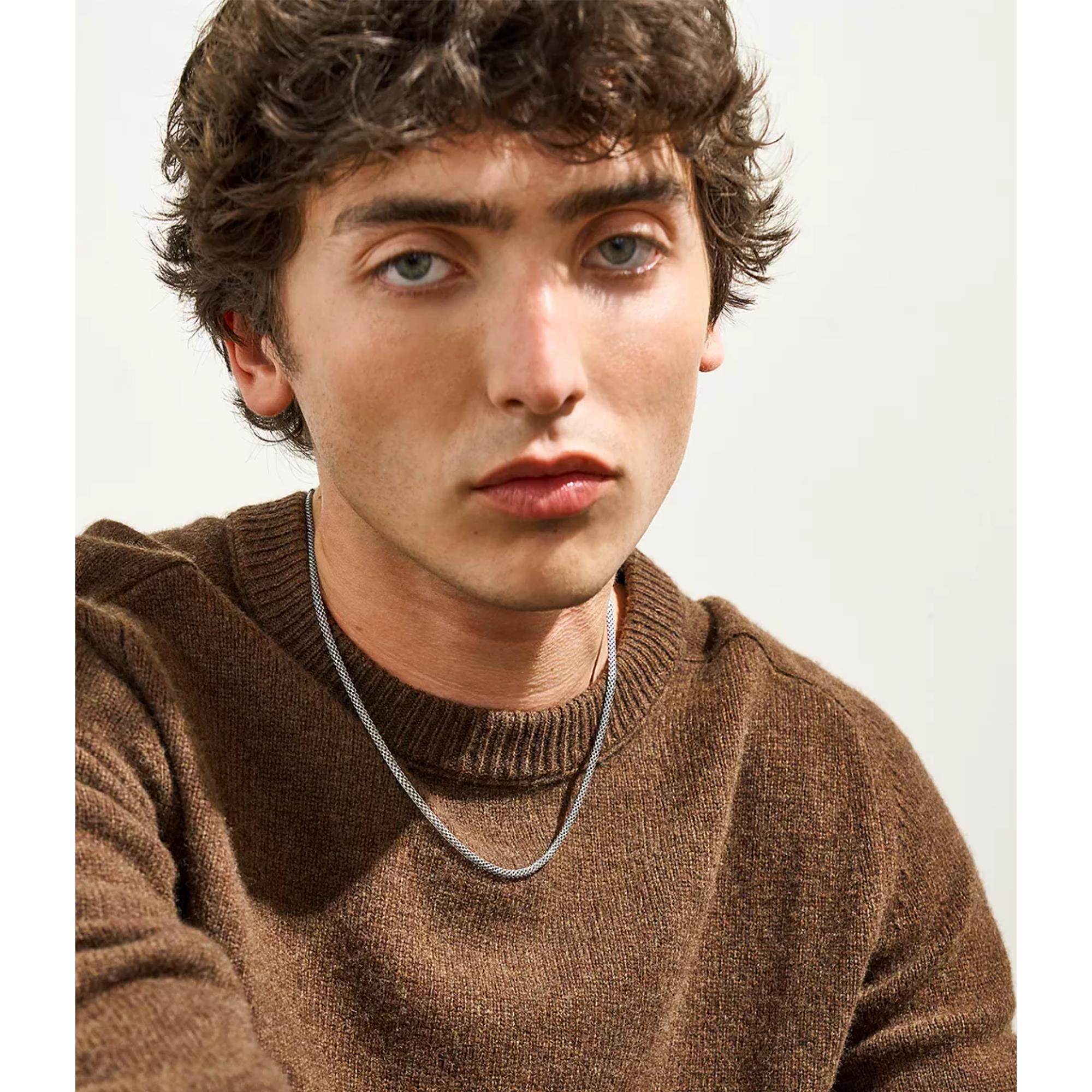Effortlessly elegant, the Skagen Tov Mesh Silver Stainless Steel Chain Men's Necklace is the epitome of contemporary Scandinavian design. With its sleek, minimalist aesthetic and durable craftsmanship, this necklace is a versatile accessory for the modern man.