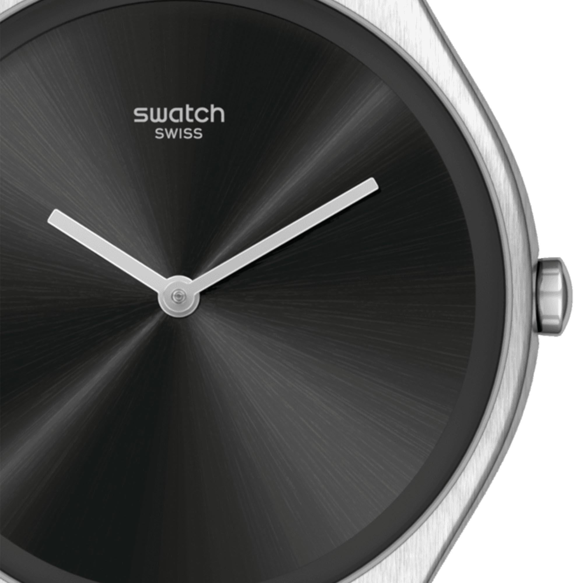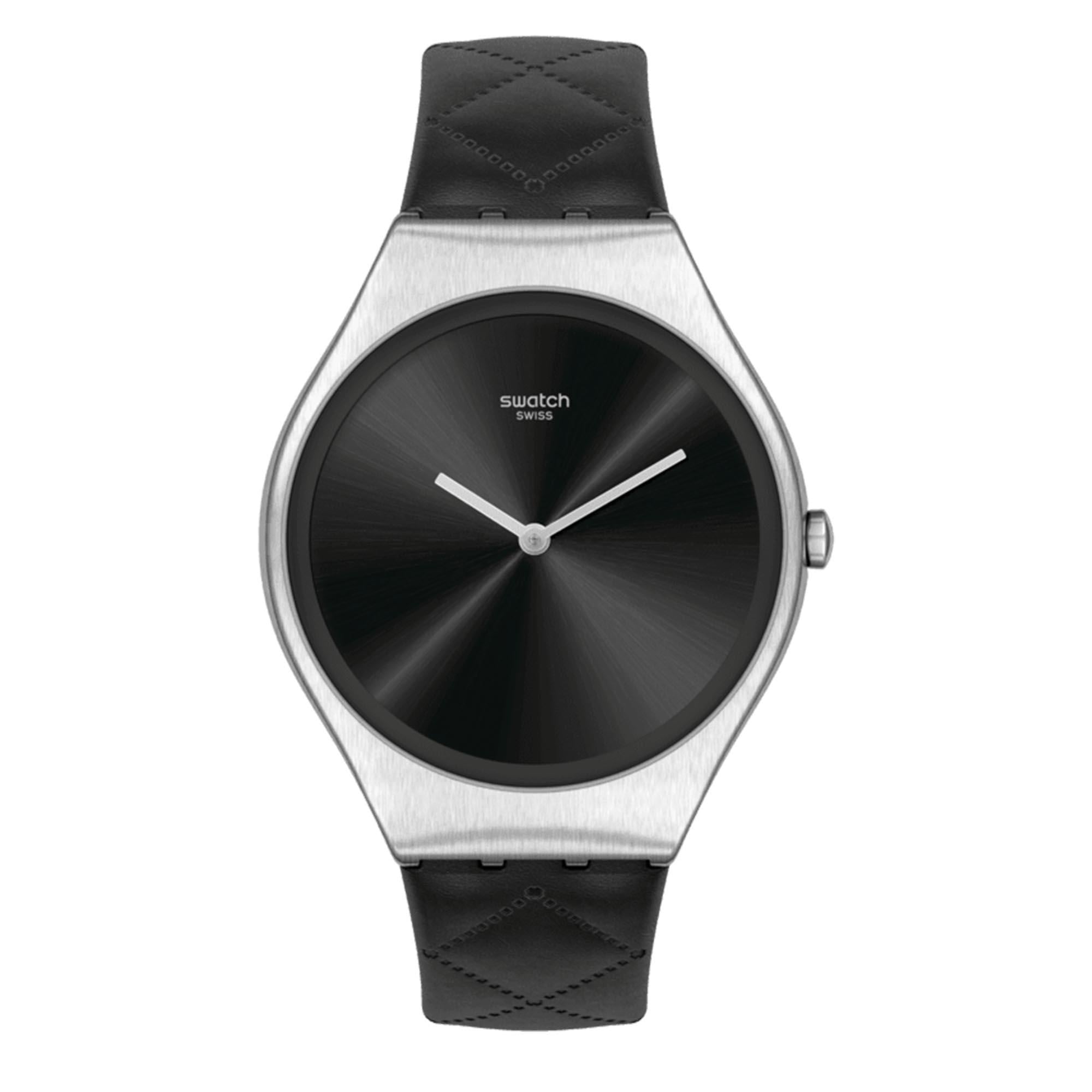 Swatch Irony Quartz Black Dial Black Leather Strap Ladies Watch SYXS136