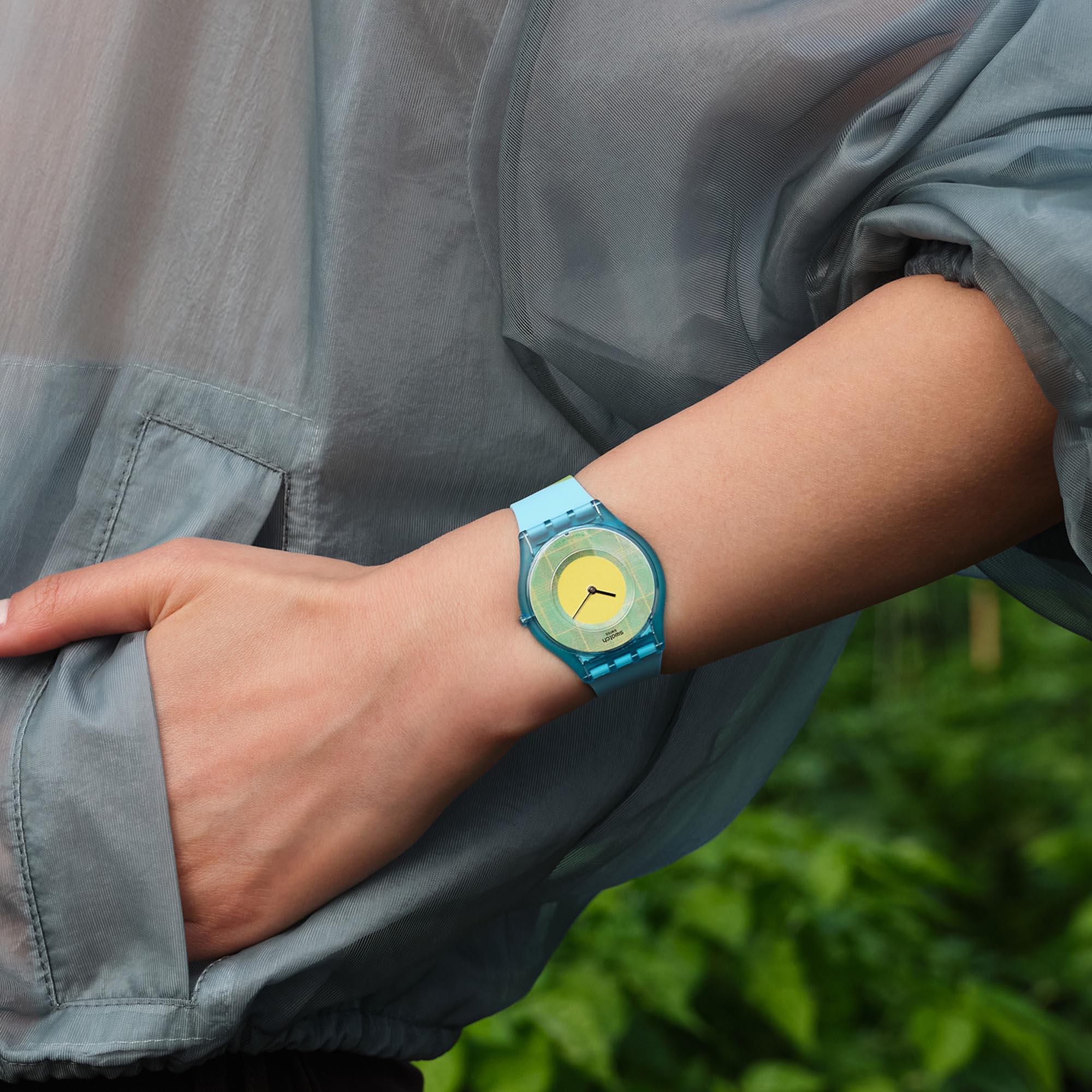 Swatch Supriya Acid Mardas 02 Quartz Yellow Dial Multi Tonal Silicone Strap Ladies Watch SS08Z104