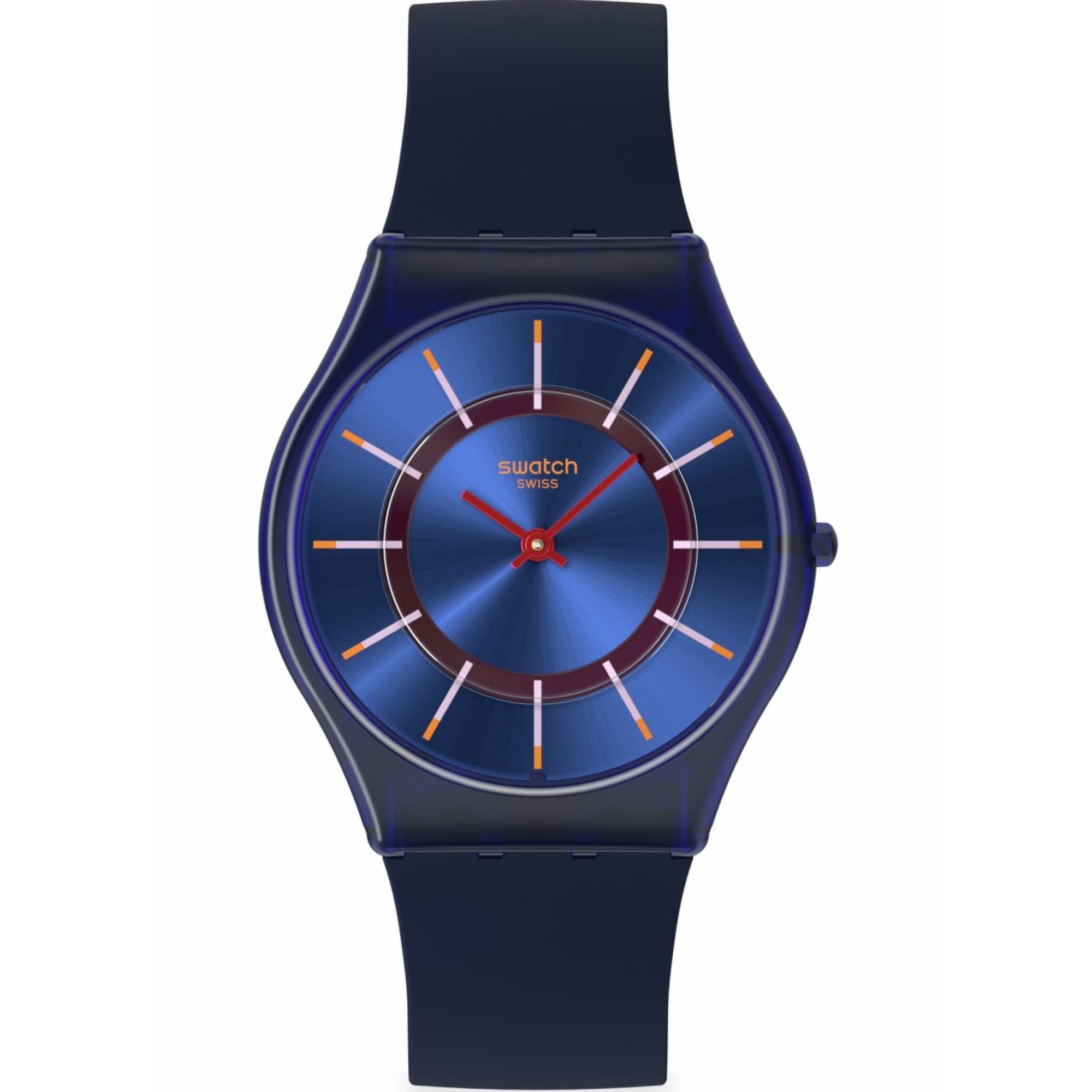 The Swatch Very Jazzy Berry Blue Dial Silicone Strap Unisex Watch (SS08N117) is a fresh and vibrant timepiece that adds a pop of color to your wrist. With its eye-catching berry blue dial and matching silicone strap, this unisex watch is designed to make a bold statement while offering ultimate comfort and durability. Perfect for both men and women who appreciate playful, stylish, and reliable accessories, this watch is an ideal choice for casual wear.