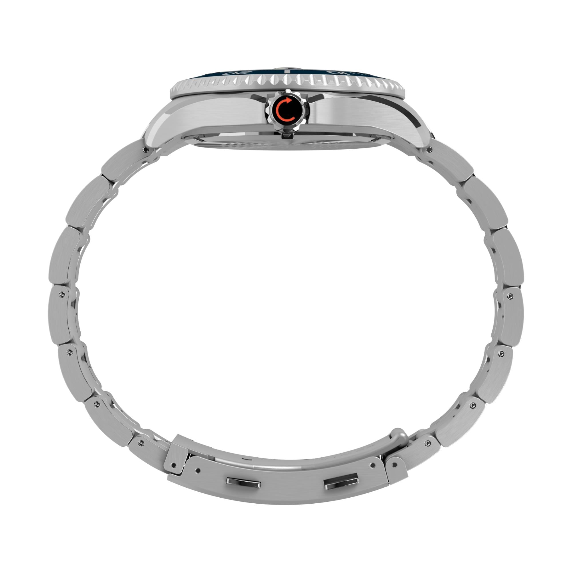 The stainless-steel bracelet underscores the watch’s durability, while its brushed and polished links provide a balanced finish that suits both rugged and refined settings. Equipped with a secure clasp, the bracelet ensures comfort and stability during extended wear. Its integration with the case reinforces the watch’s streamlined profile and professional appeal.