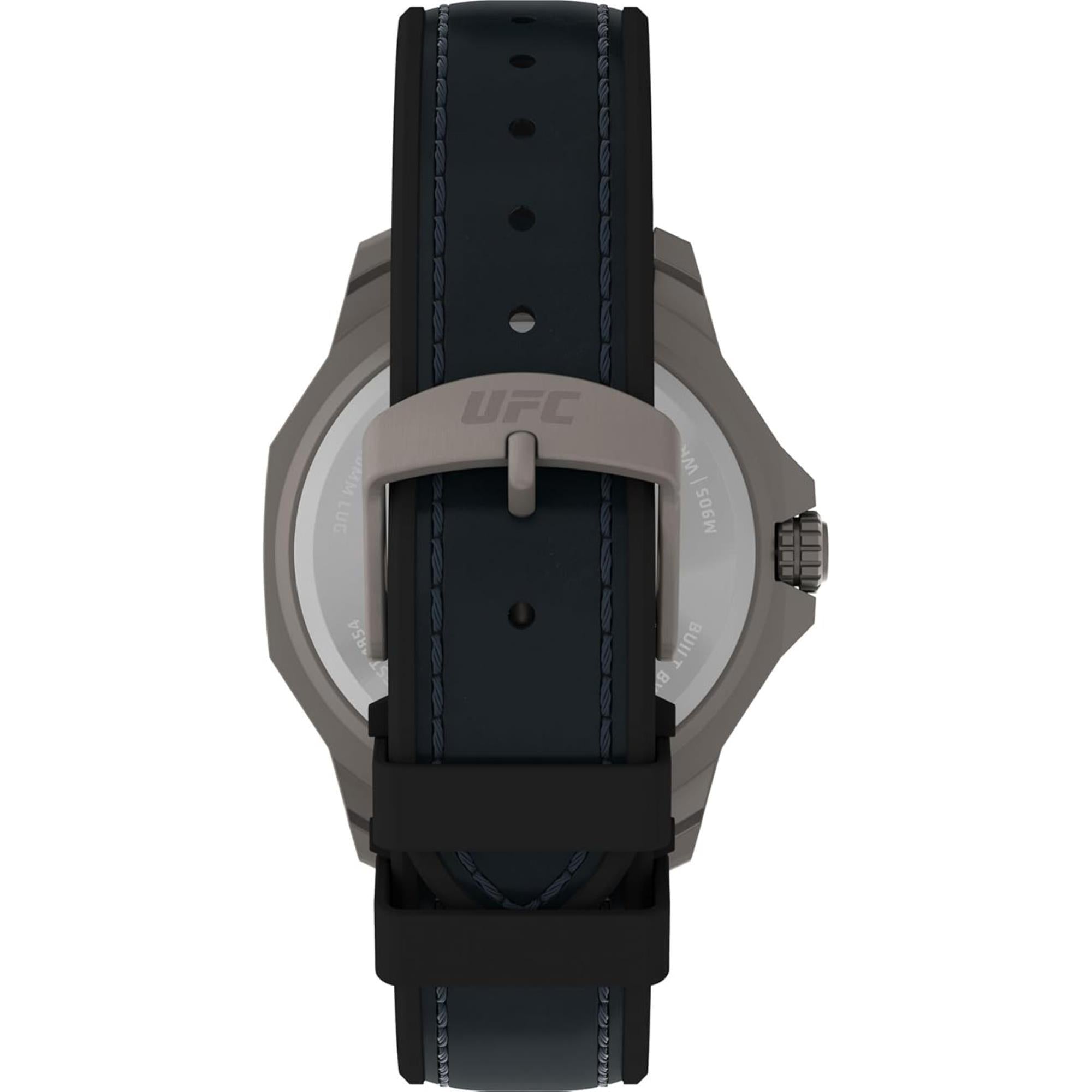 The Timex UFC Reveal Silicone Backed Leather Strap Men's Watch (TW2V85700) merges classic style with modern functionality. Featuring a unique blend of silicone and leather, this watch is perfect for UFC fans and those looking for a versatile timepiece that works for both formal and casual settings.