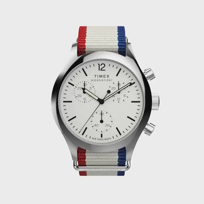 Timex Weekender New England Chronograph White Dial Eco Conscious Strap Unisex Watch TW2Y15800